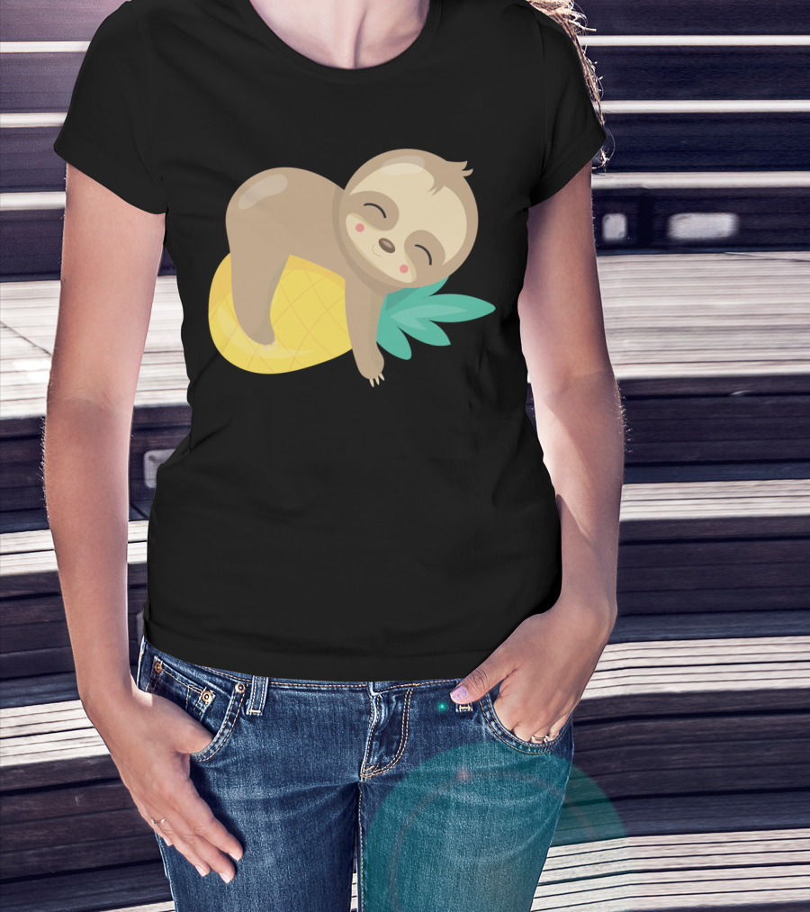 Baby Sloth Sleeping On Pineapple T-Shirt