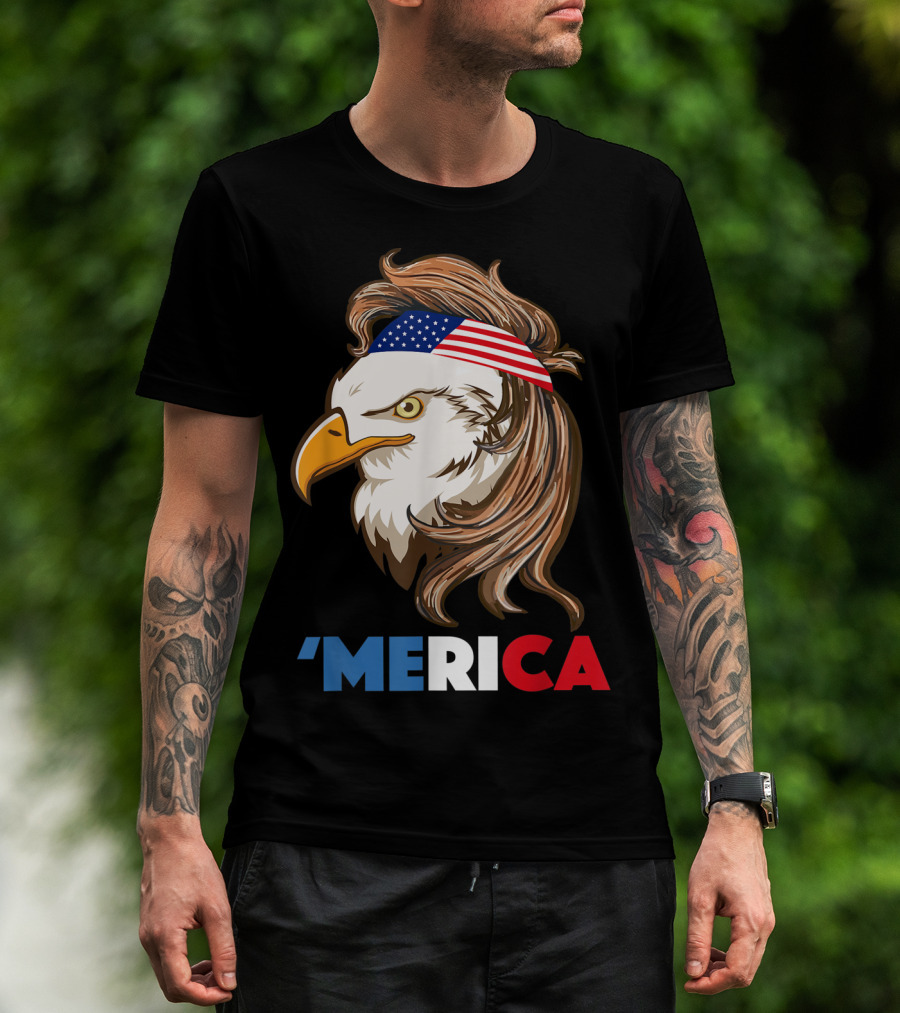 'Merca Bald Eagle Mullet American Flag Headband T-Shirt