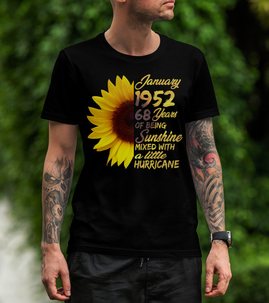 How much will this January 1952 68 Years of Being Sunshine Mixed with a Little Hurricane shirt shrink?