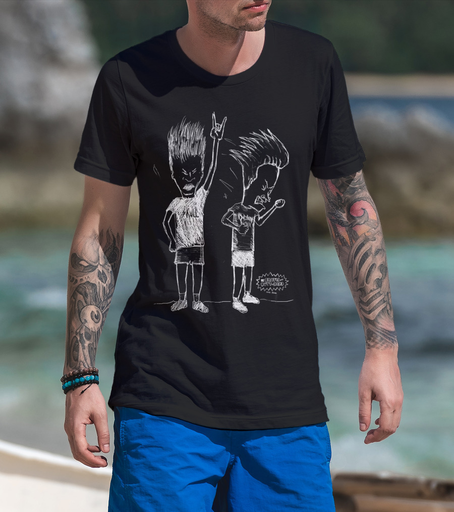 Beavis And Butthead Rock Skull Headbang Sketch T-Shirt