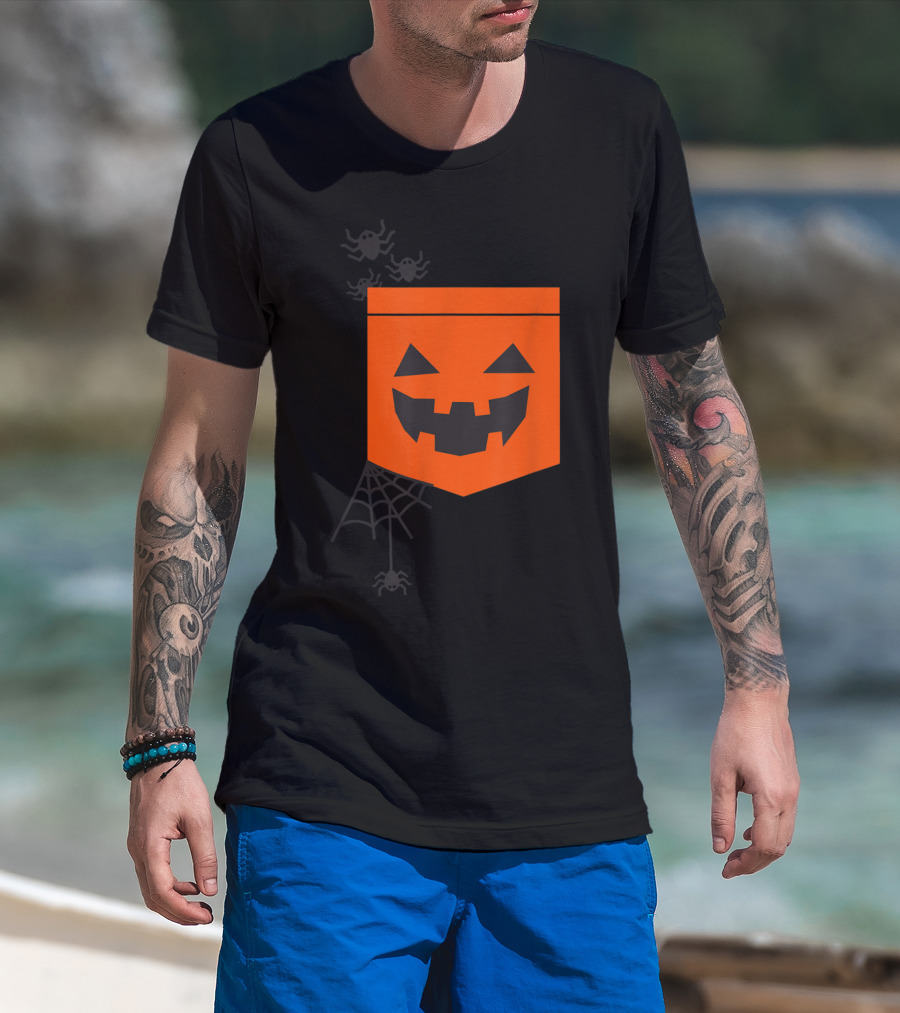 The Happy Halloween Pumpkin with Spiderweb and Creepy Faces T-shirt is designed for everyday wear and a consistent fit. Fabric is pre-shrunk ring-spun cotton with durable stitching. See the size chart below for exact measurements.