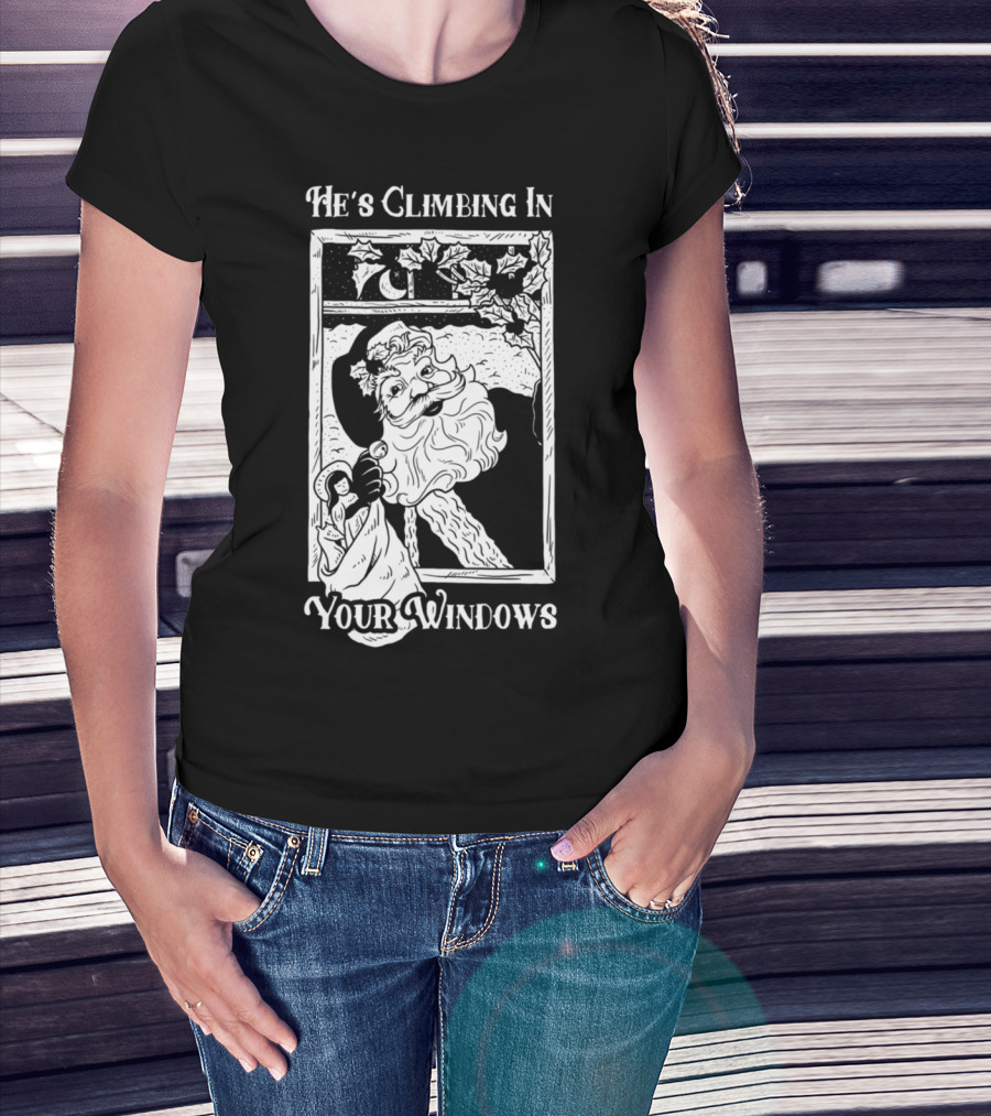 He's Climbing In Your Windows Vintage Santa T-Shirt