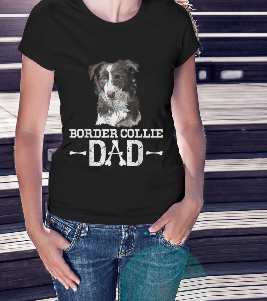 Border Collie Dad With Detailed Dog Illustration And Bone Accents T-Shirt