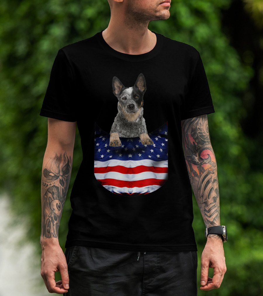 Australian Cattle Dog Pocket Funny American Flag Dog T-Shirt