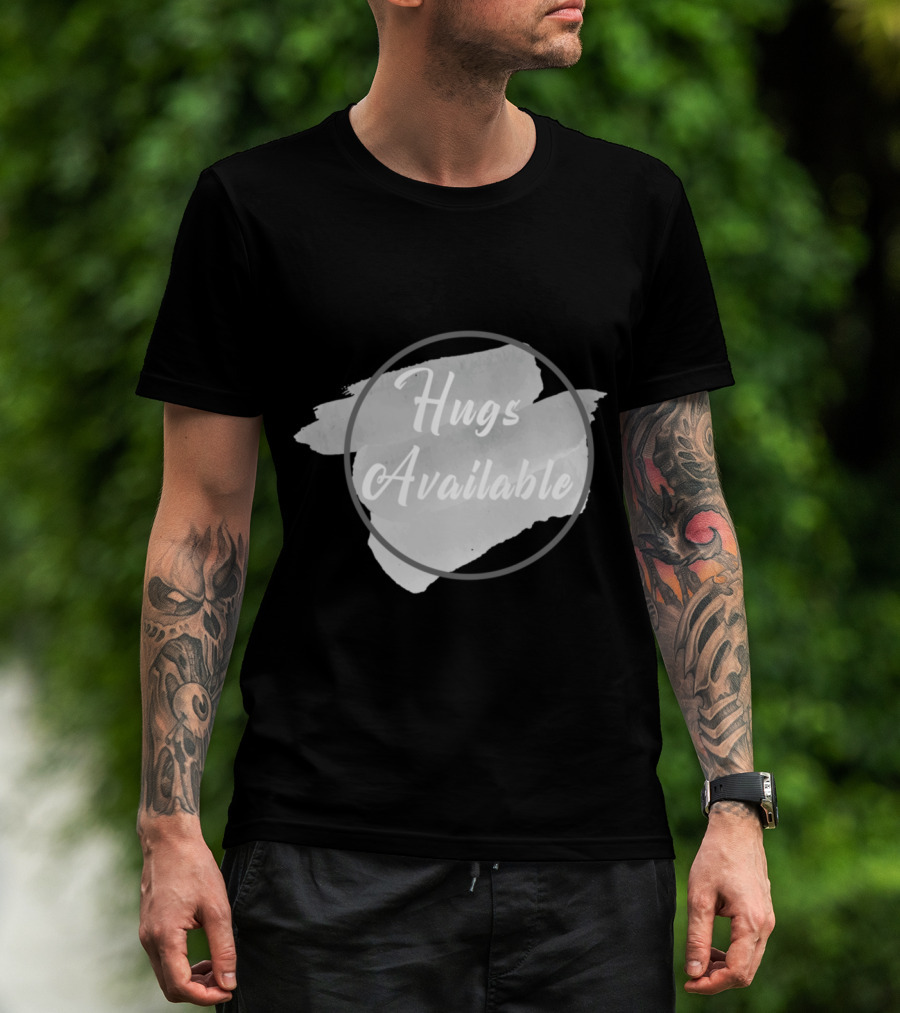 Hugs Available Watercolor Brushstroke Circle T-Shirt