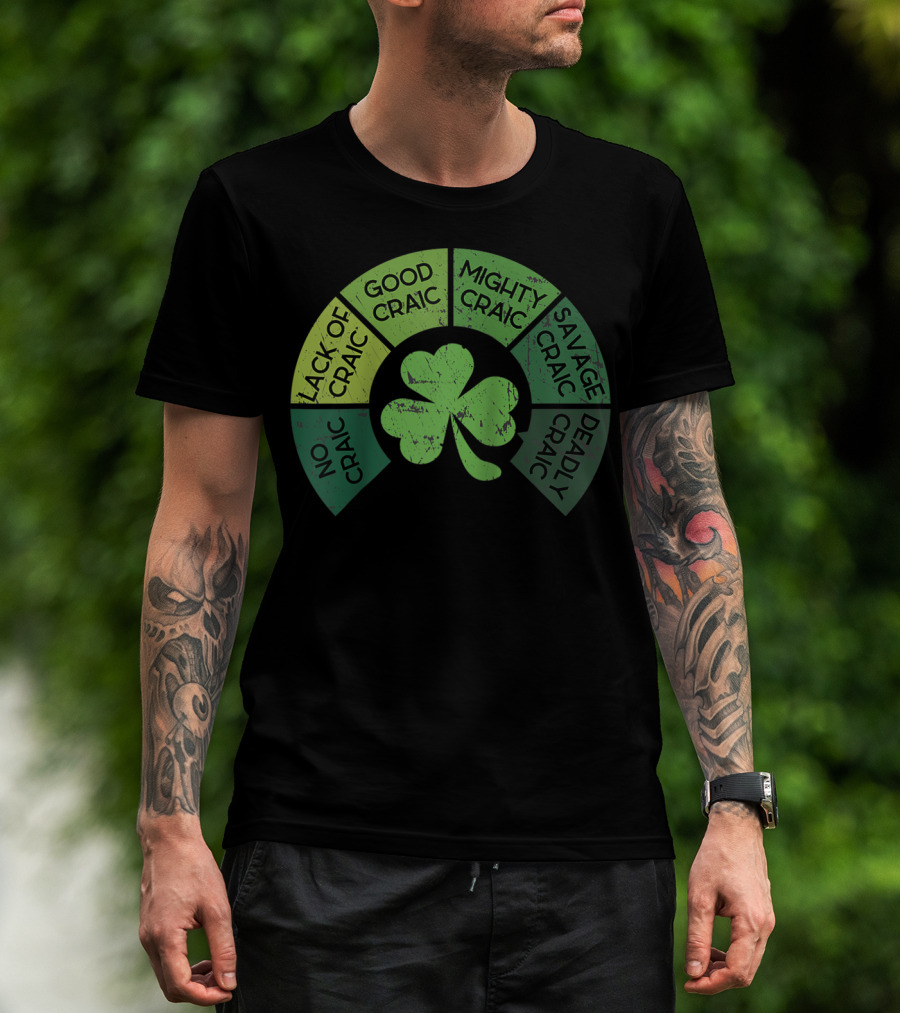 Craicometer No Craic Lack Of Craic Good Craic Mighty Craic Savage Craic Deadly Craic Saint Pattys Day Ireland Saint T-Shirt
