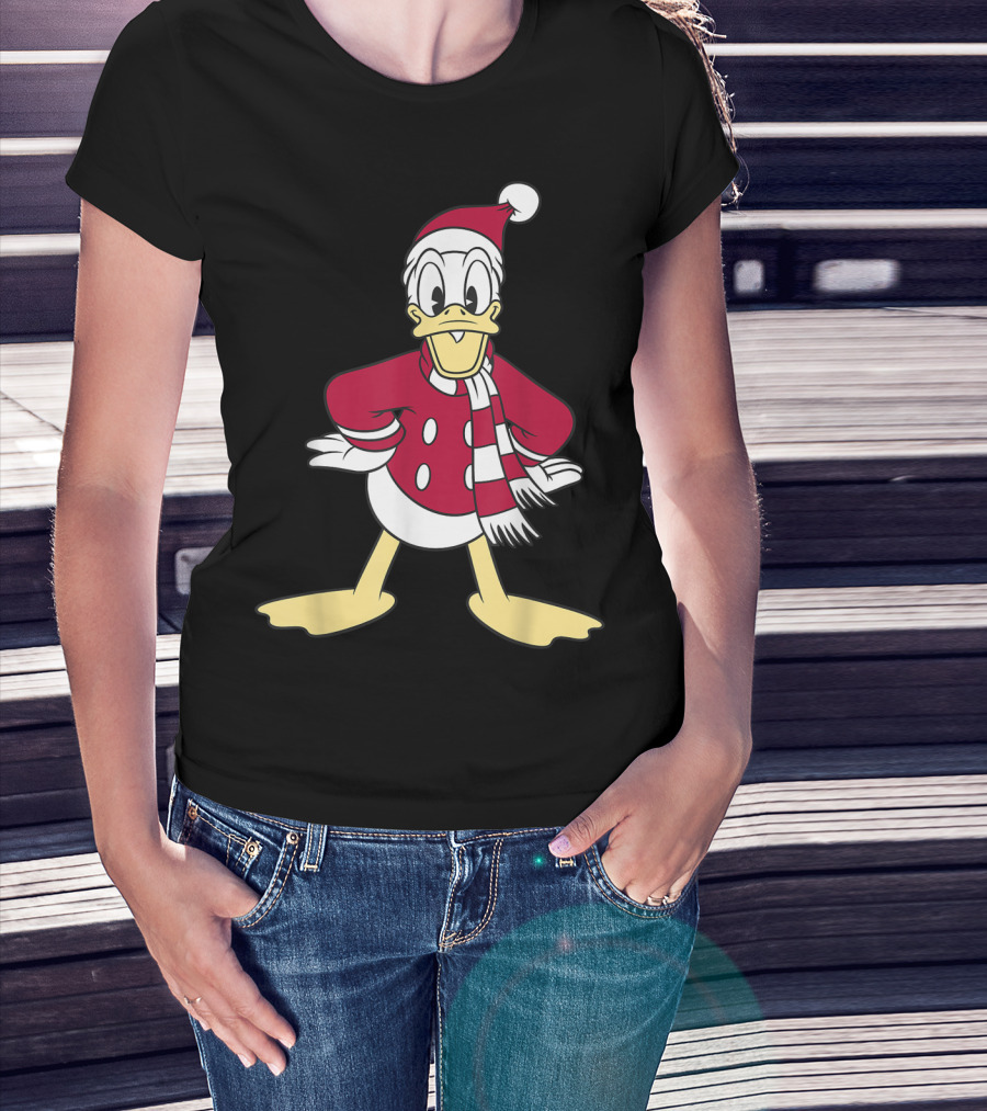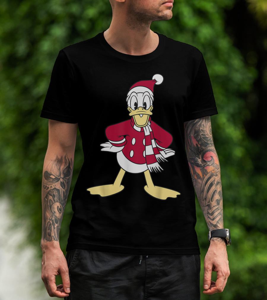 Disney Donald Duck In Festive Red Santa Outfit With Scarf T-Shirt