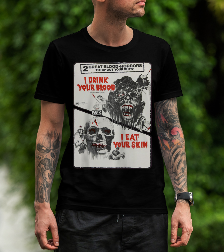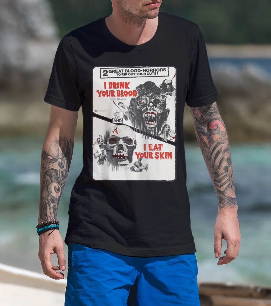 2 Great Blood-Horrors I Drink Your Blood I Eat Your Skin Classic Halloween Monster T-Shirt
