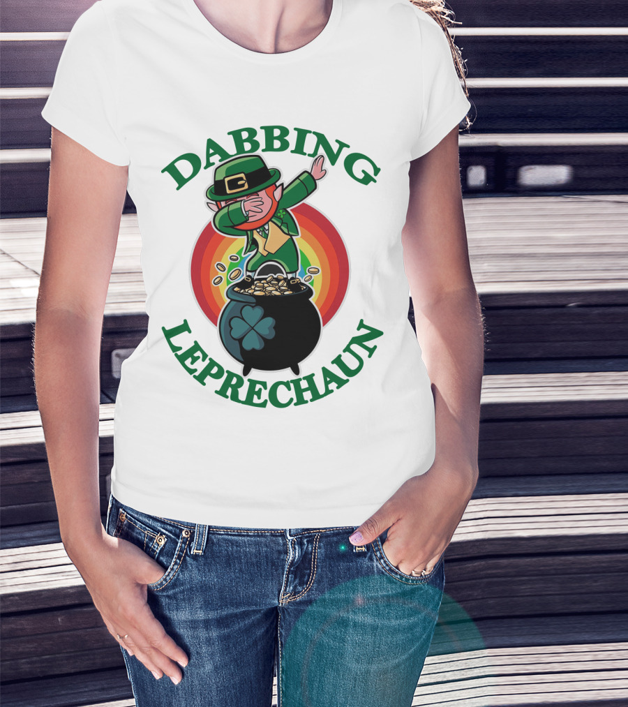 Dabbing Leprechaun Pot Of Gold St. Patrick's Day Rainbow T-Shirt