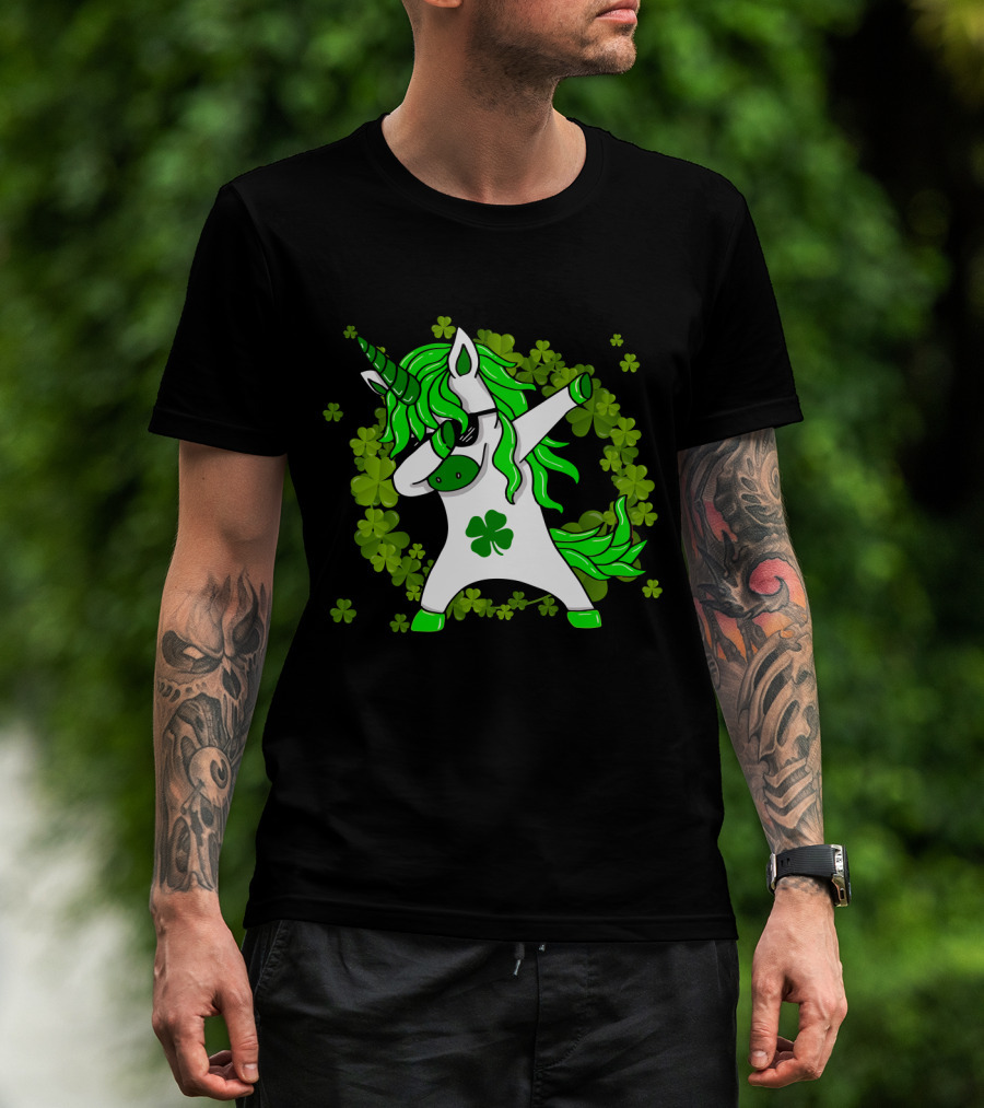 St Patricks Day Shamrock Unicorn Dabbing T-Shirt