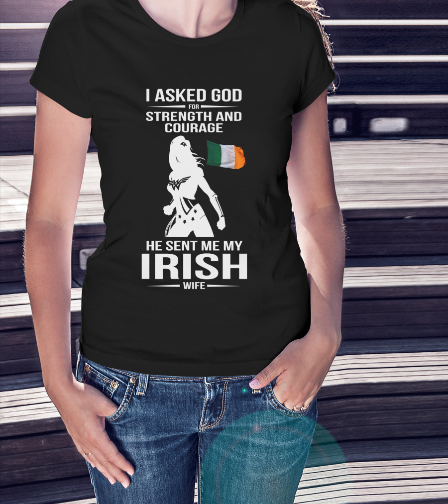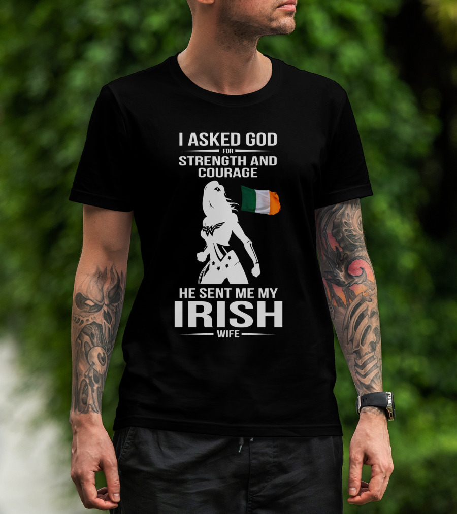 I Asked God For Strength And Courage He Sent Me My Irish Wife Irish Flag And Hero T-Shirt