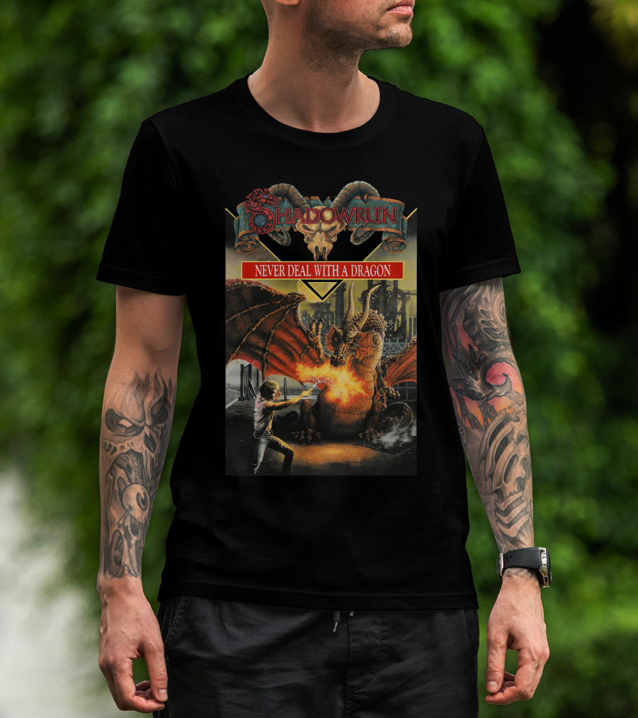 How much will this Shadowrun Never Deal with a Dragon shirt shrink?