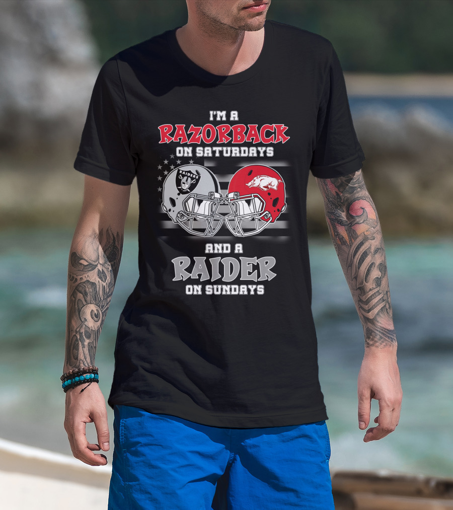 I'm A Razorback On Saturdays And A Raider On Sundays Razorbacks Raiders Helmet T-Shirt