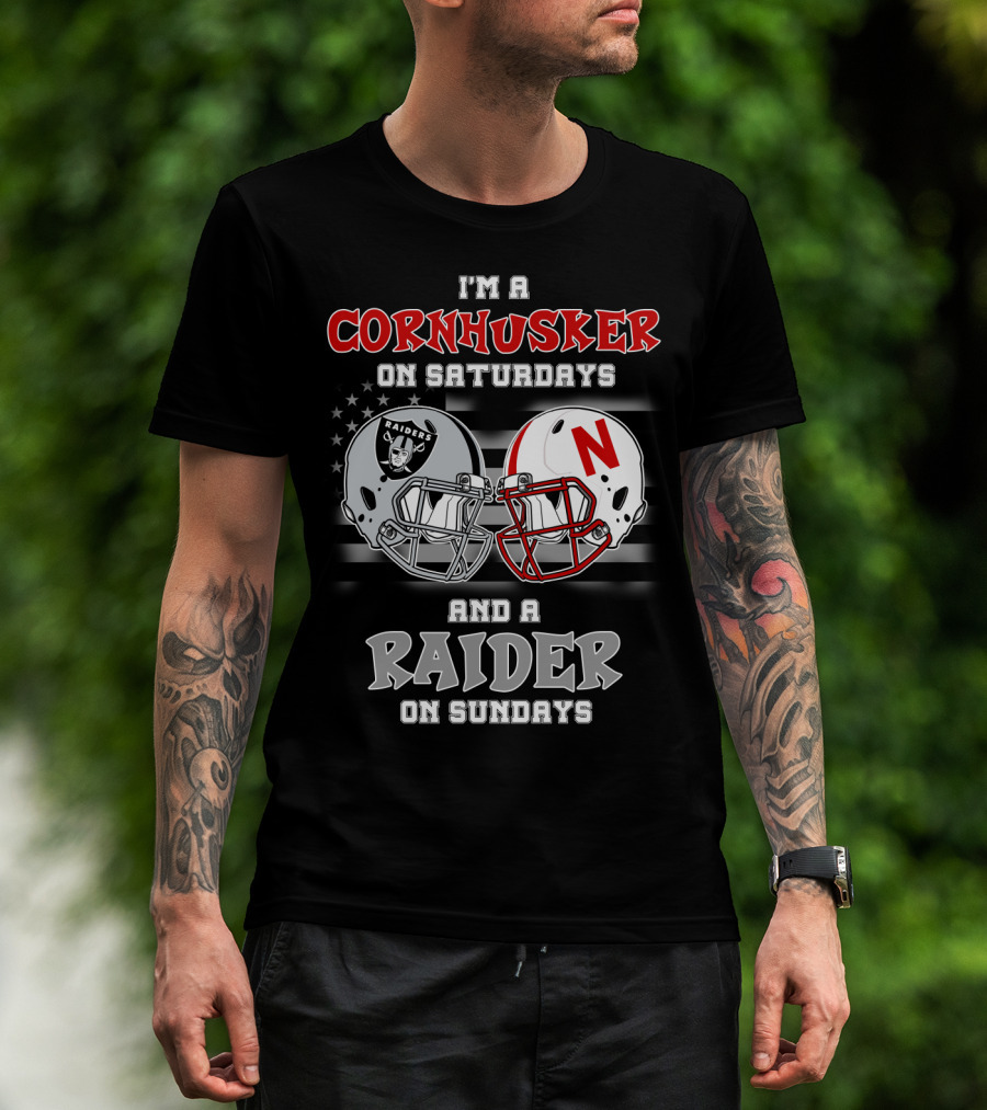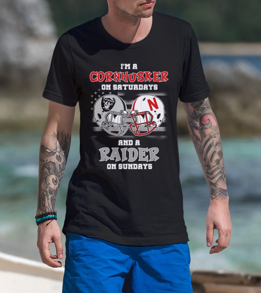 I'm A Cornhusker On Saturdays And A Raider On Sundays Raiders Nebraska Helmet T-Shirt