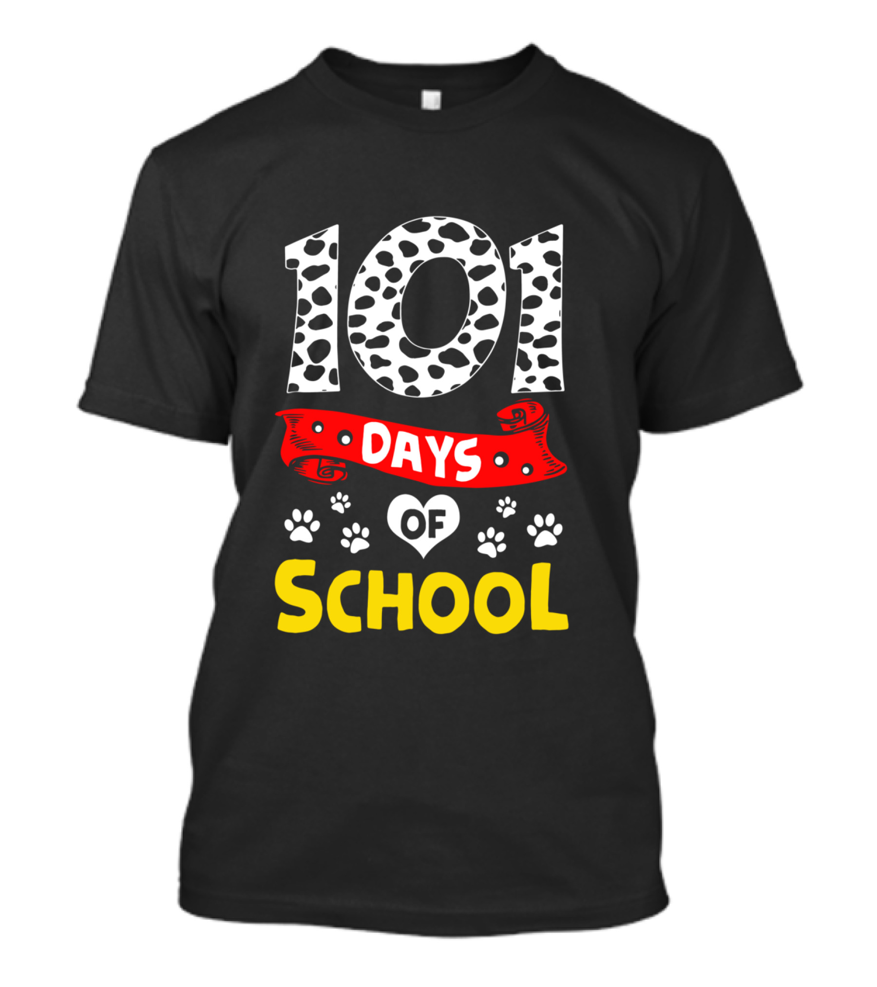 The 101 Days of School Dalmatian Paws T-shirt is designed for everyday wear and a consistent fit. Fabric is pre-shrunk ring-spun cotton with durable stitching. See the size chart below for exact measurements.