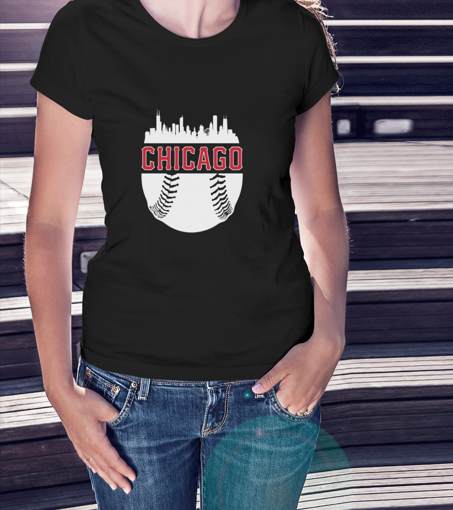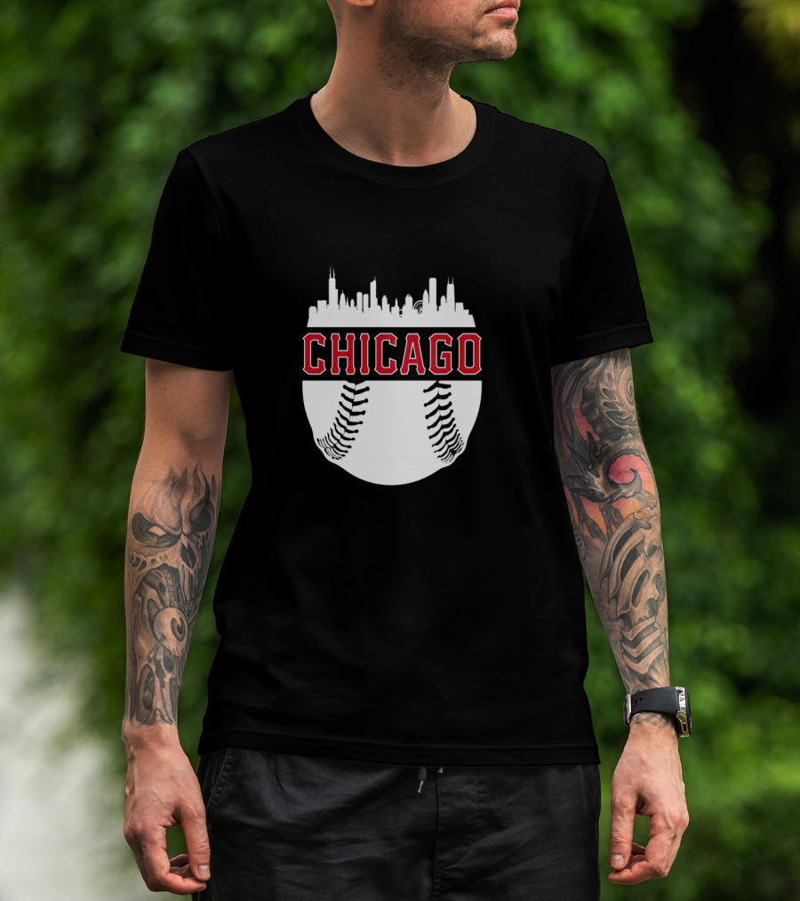 Chicago Baseball Vintage Skyline Seamlessly Fused With Iconic Cityscape T-Shirt