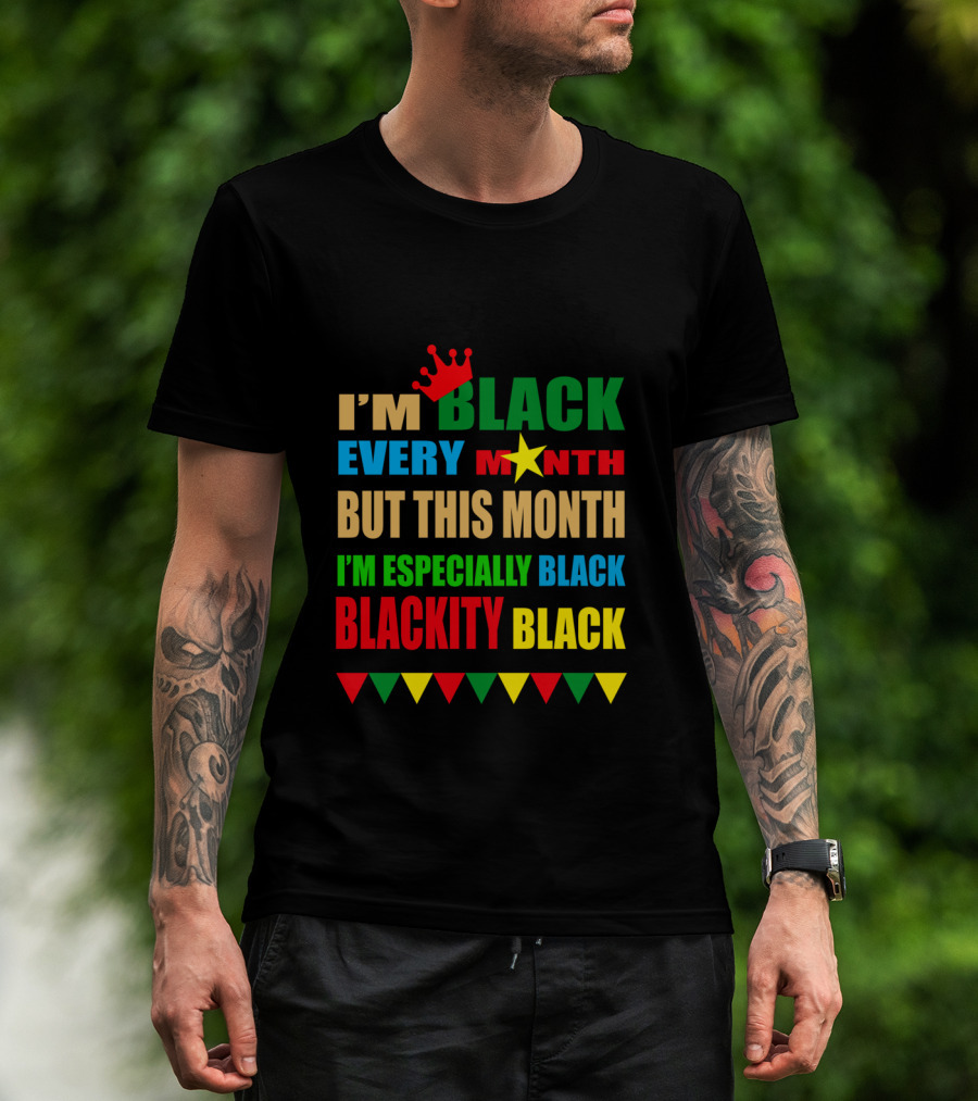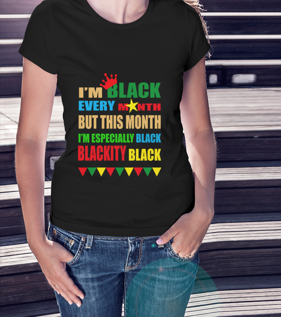 How much will this I'm Black Every Month But This Month I'm Especially Black Blackity Black With Crown and Star shirt shrink?