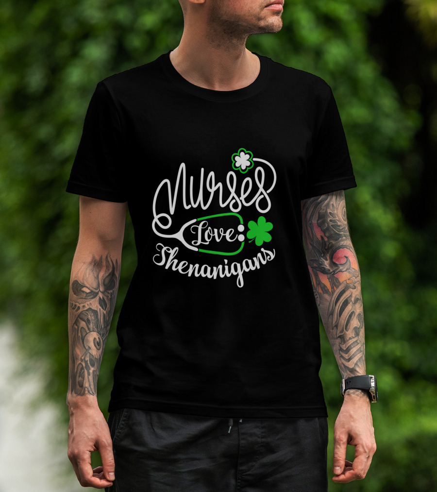 Nurses Love Shenanigans With Stethoscope And Shamrocks St. Patrick's Day T-Shirt