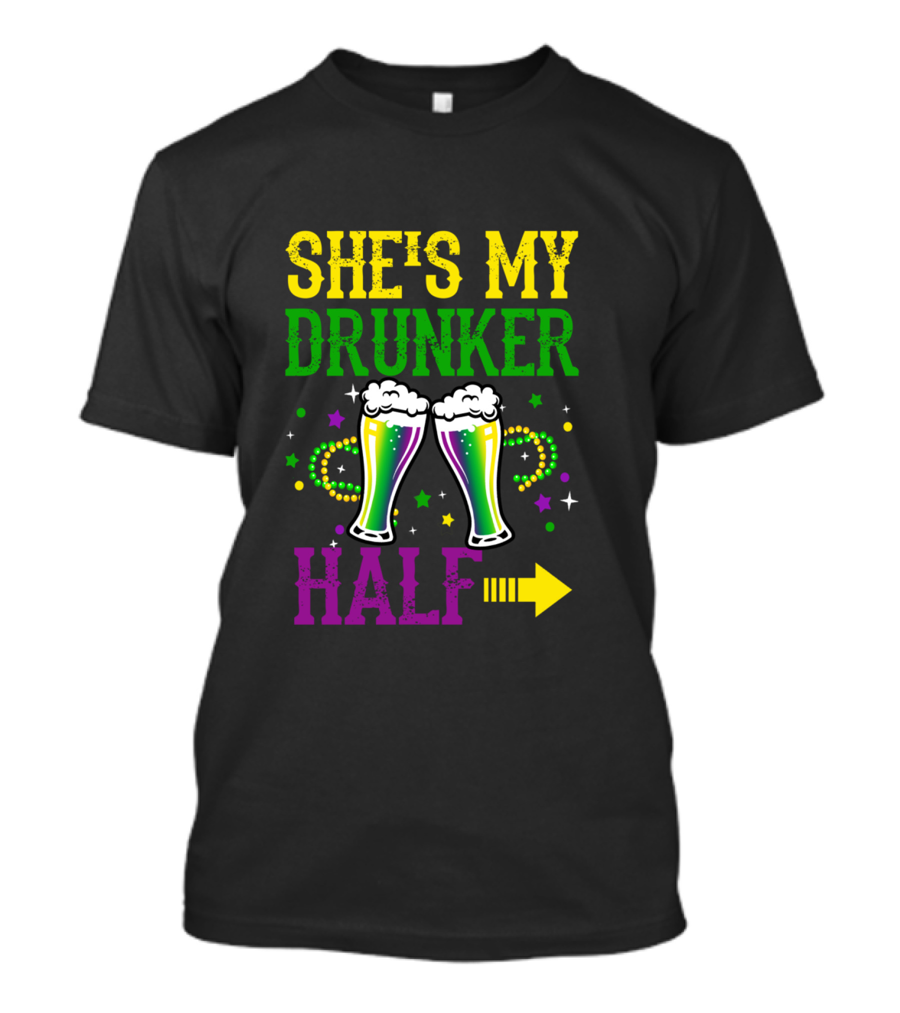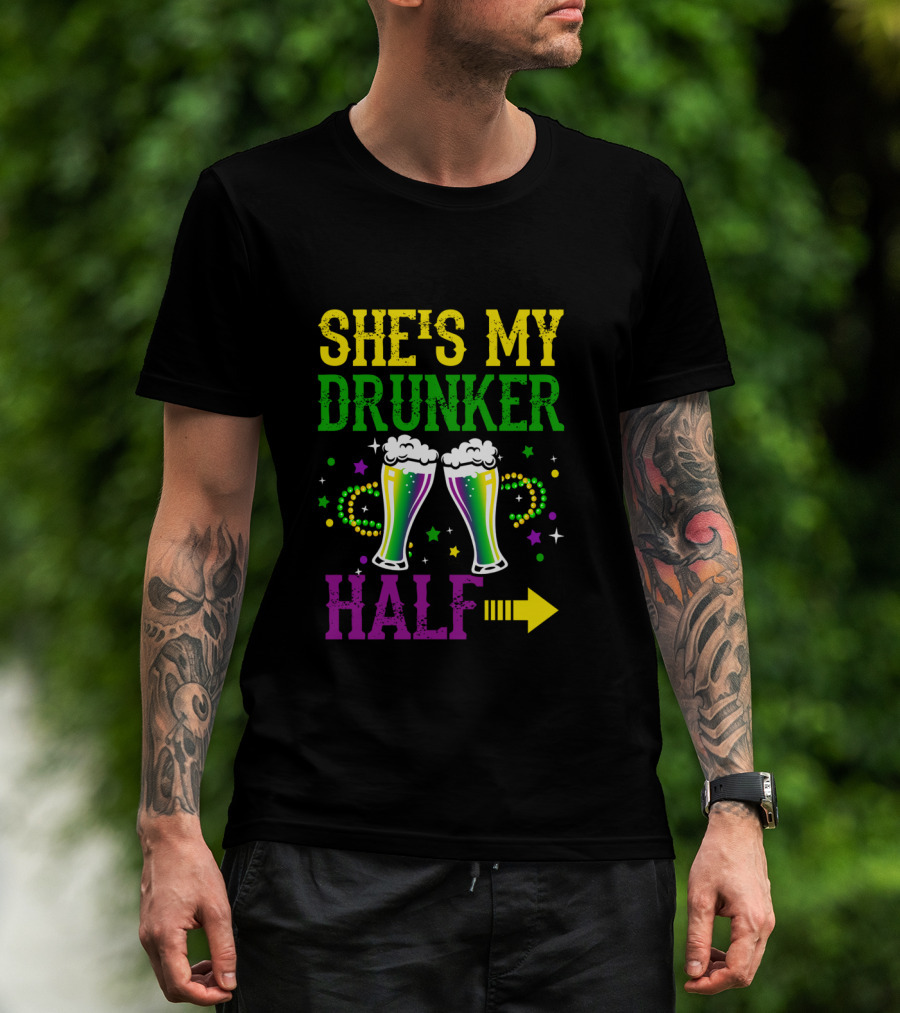 She's My Drunker Half Beer Glasses Mardi Gras Matching Couple T-Shirt