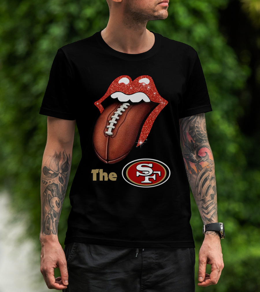 The The Rolling 49ers Football Tongue T-shirt is designed for everyday wear and a consistent fit. Fabric is pre-shrunk ring-spun cotton with durable stitching. See the size chart below for exact measurements.