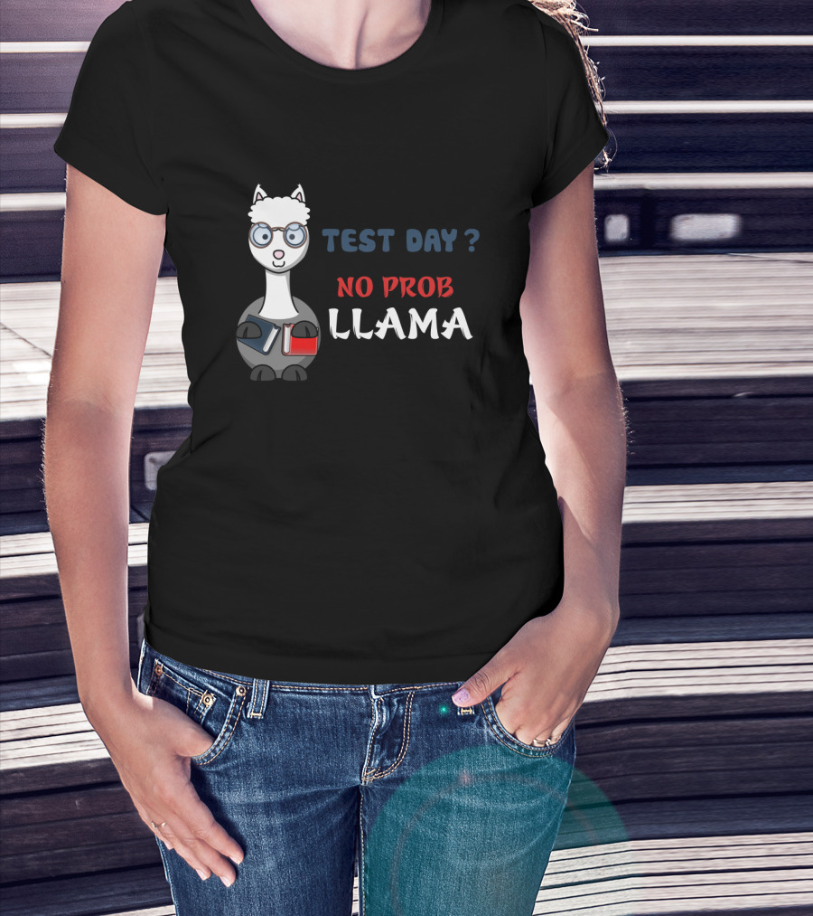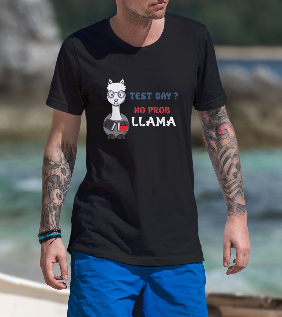 Test Day No Prob Llama Teacher Funny Exam Testing Teaching T-Shirt