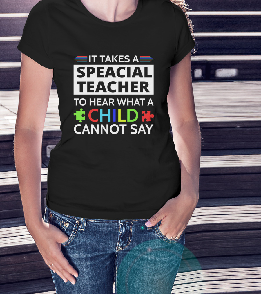 It Takes A Speacial Teacher To Hear What A Child Cannot Say Autism Awareness Puzzle Pieces T-Shirt