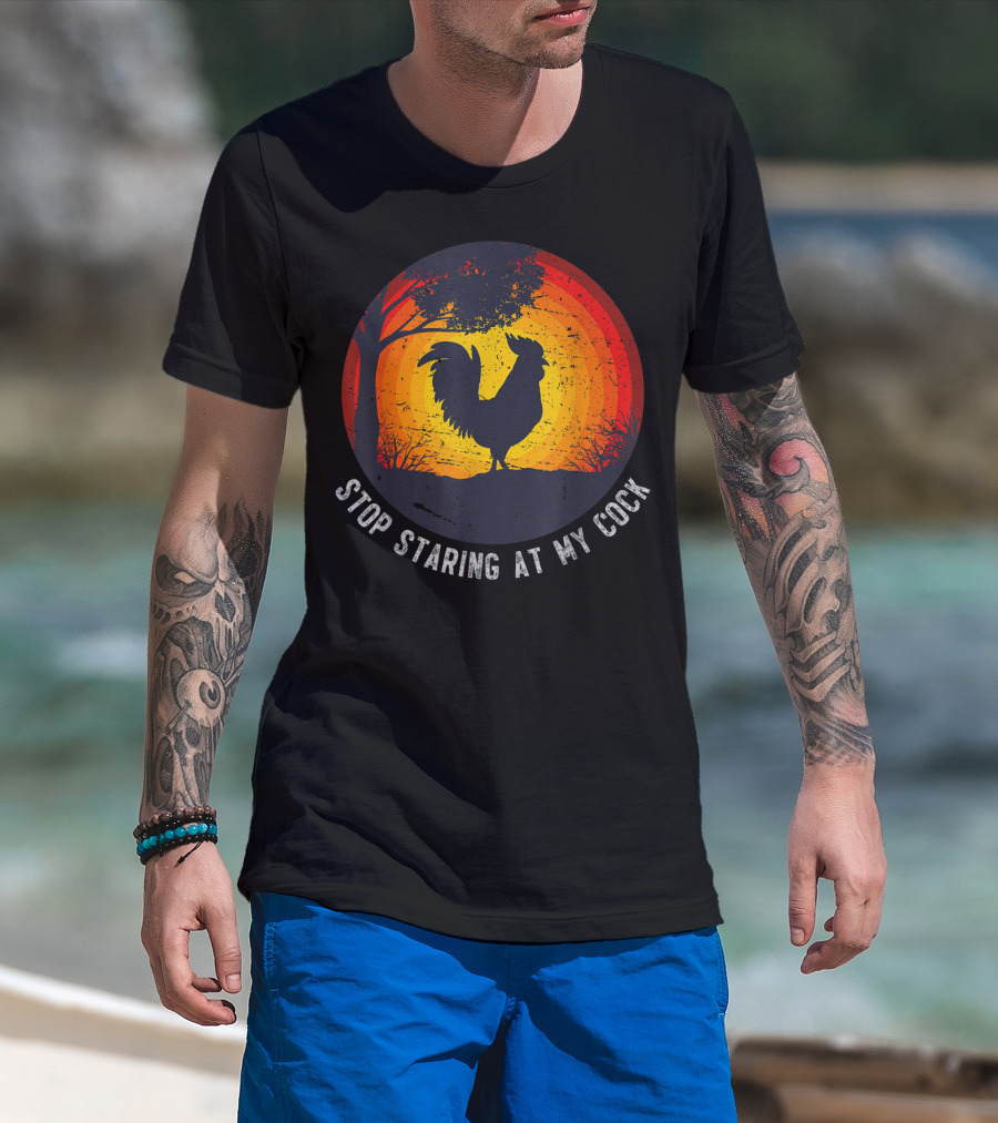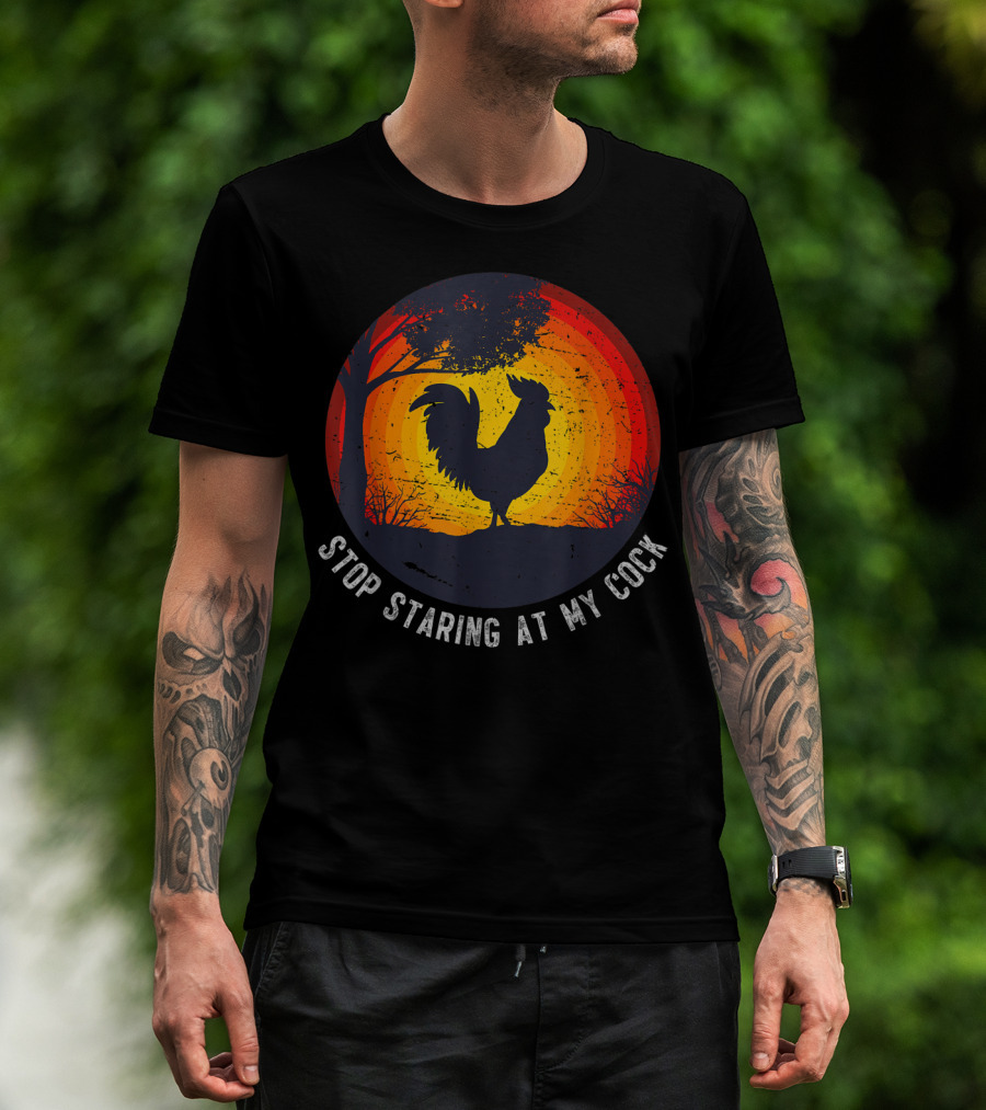 Stop Staring At My Cock Funny Farmer Chicken Farming Rooster T-Shirt