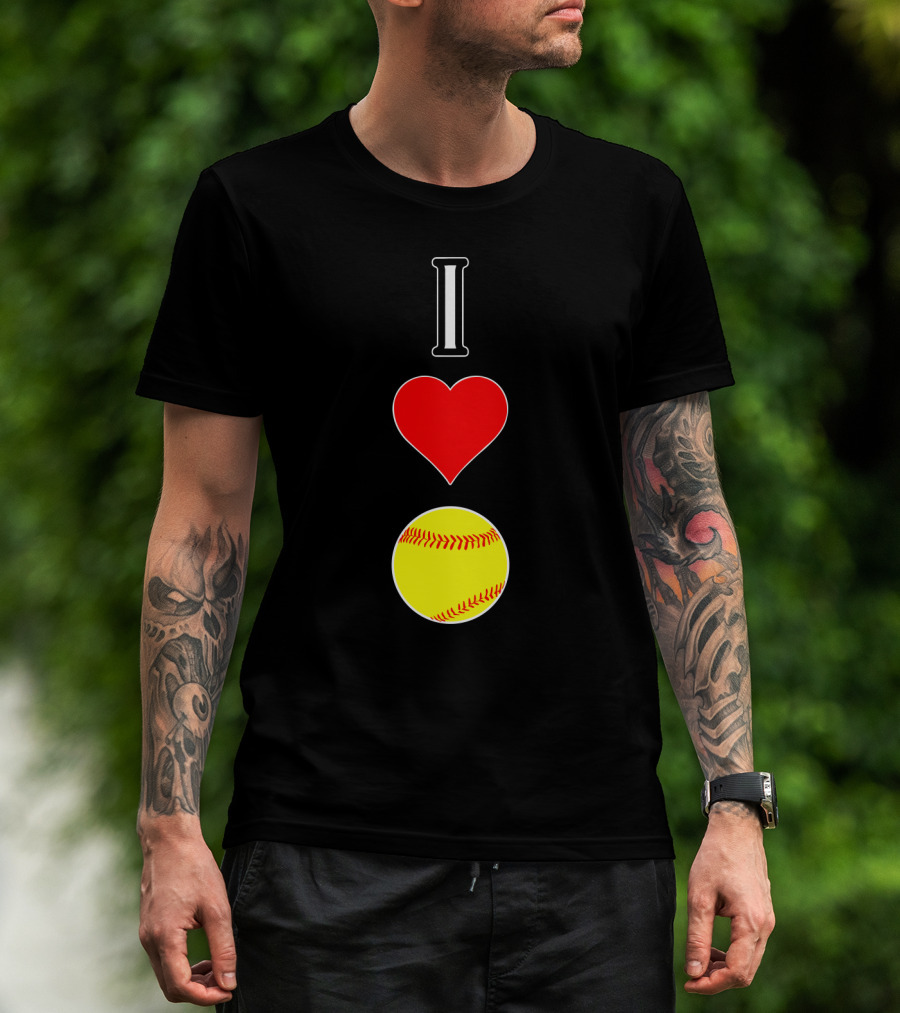 I Love Softball Player Vertical Heart Softball T-Shirt