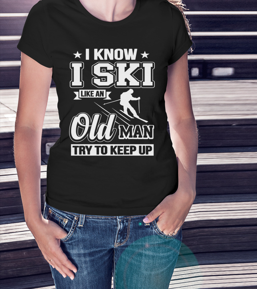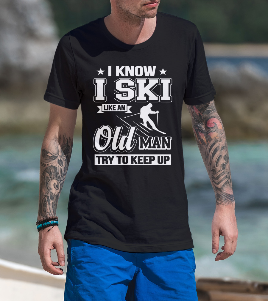 I Know I Ski Like An Old Man Try To Keep Up Skiing Challenge T-Shirt
