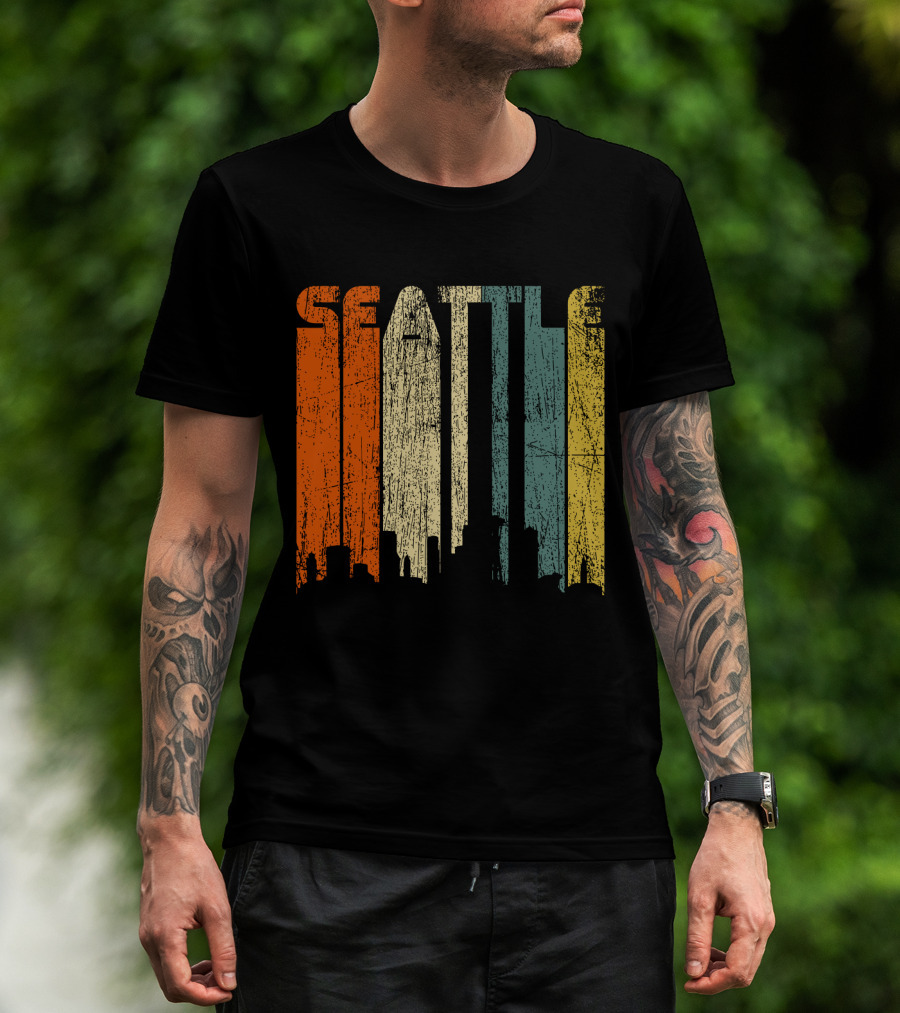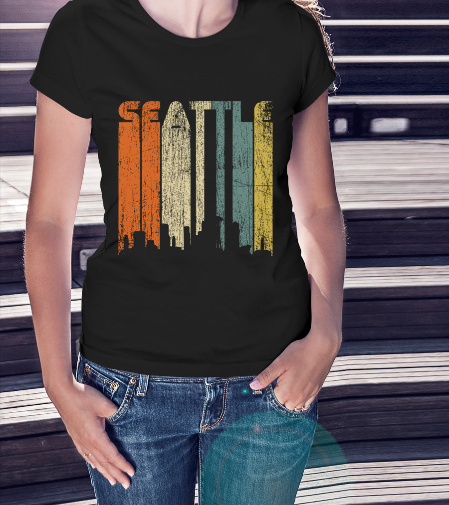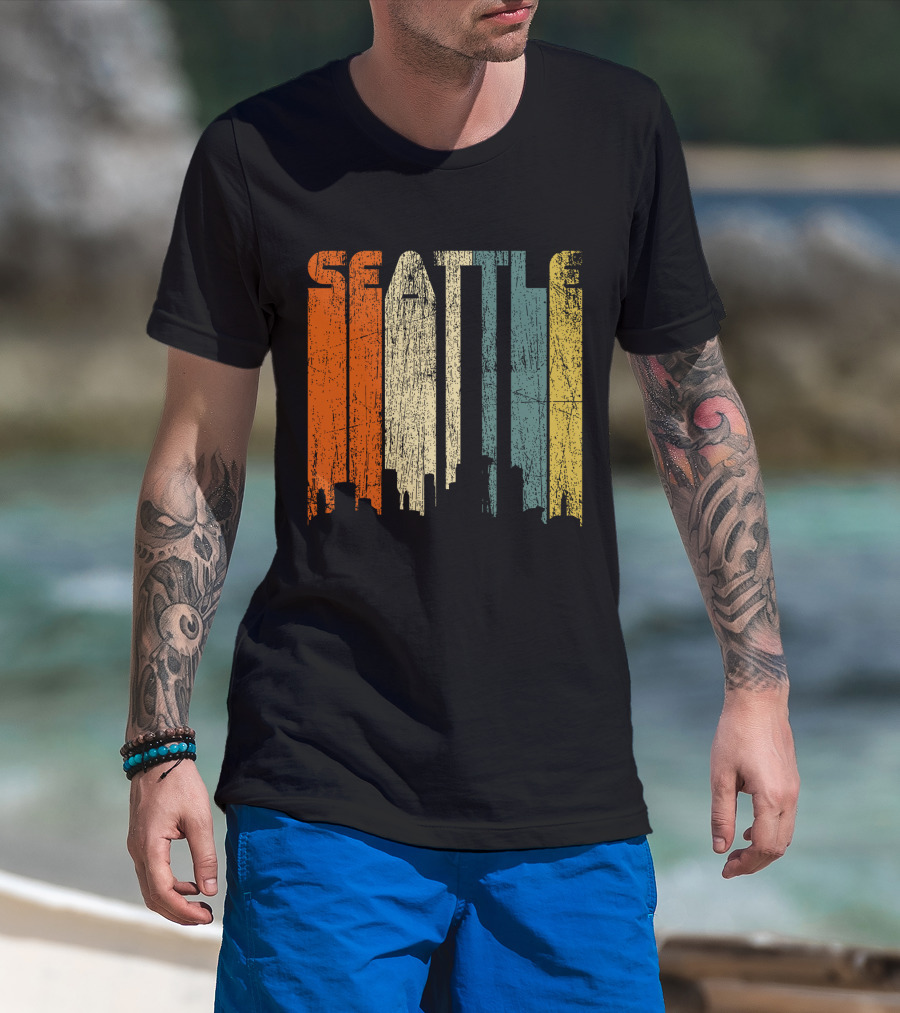 Seattle Vintage City Skyline Retro 70s T-Shirt