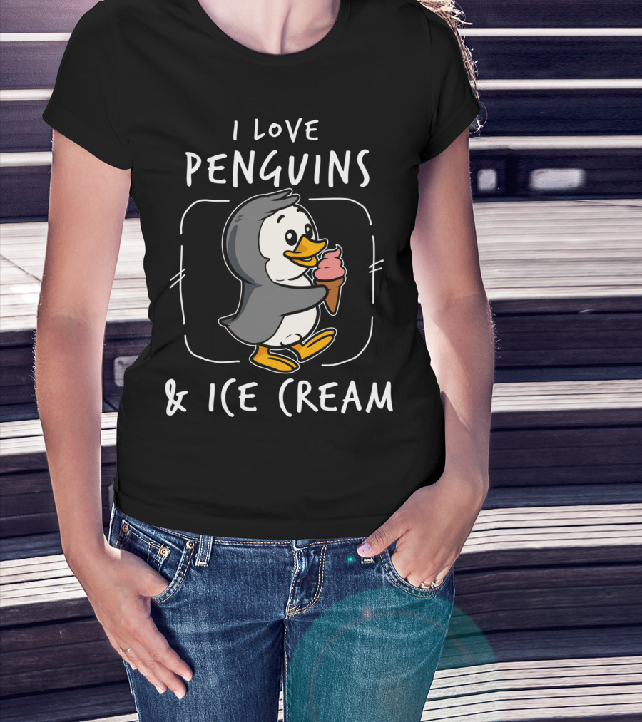 I Love Penguins And Ice Cream Sorbet Delicious Funny T-Shirt