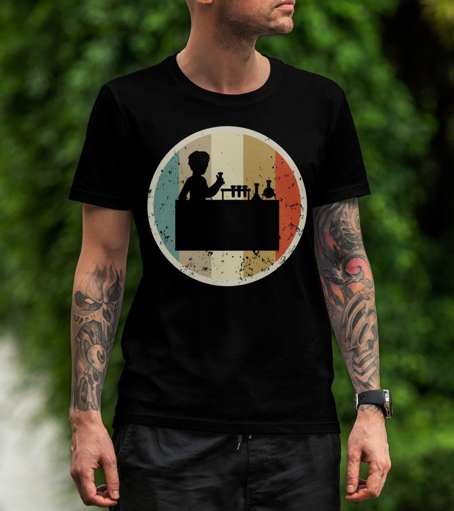 Silhouette Of Laboratory Chemist Technician Science With Retro Stripes T-Shirt