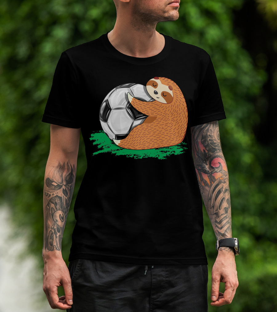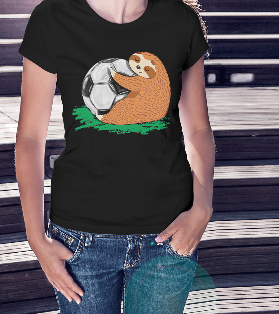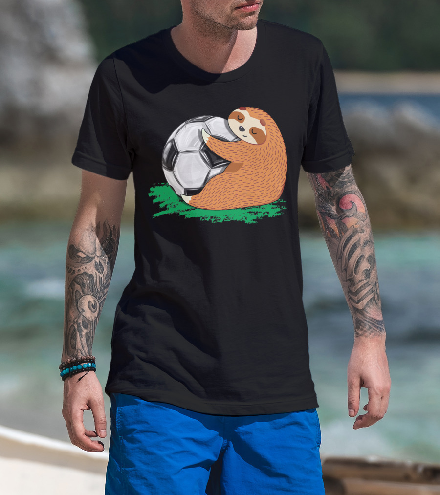 Lazy Sloth Soccer Lover Team Ball Sport Hugging Giant Soccer Ball T-Shirt