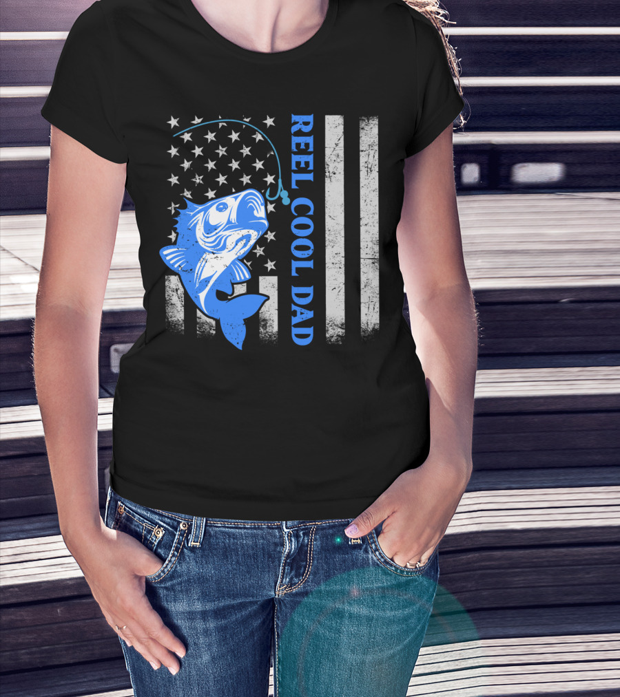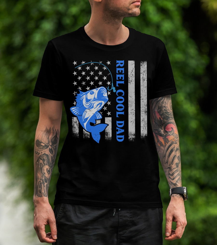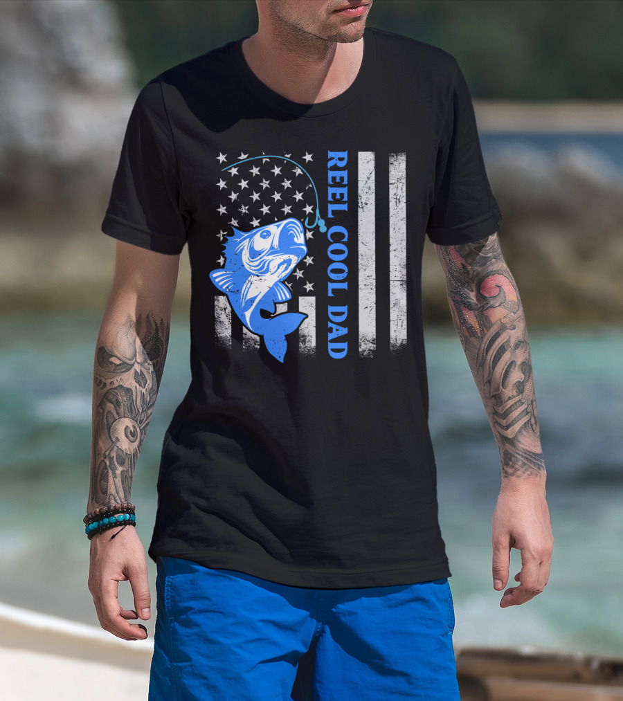 Reel Cool Dad Funny Fishing American Flag Fish T-Shirt