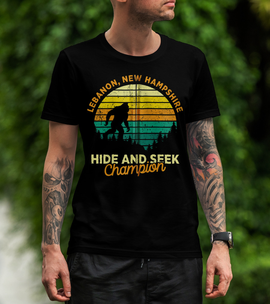 Lebanon New Hampshire Bigfoot Hide And Seek Champion Retro Sunset T-Shirt