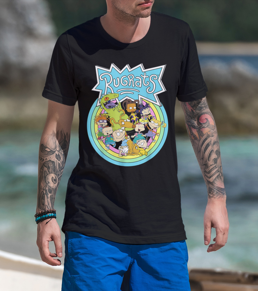 Rugrats Group Characters With Rainbow Circles Classic Title T-Shirt