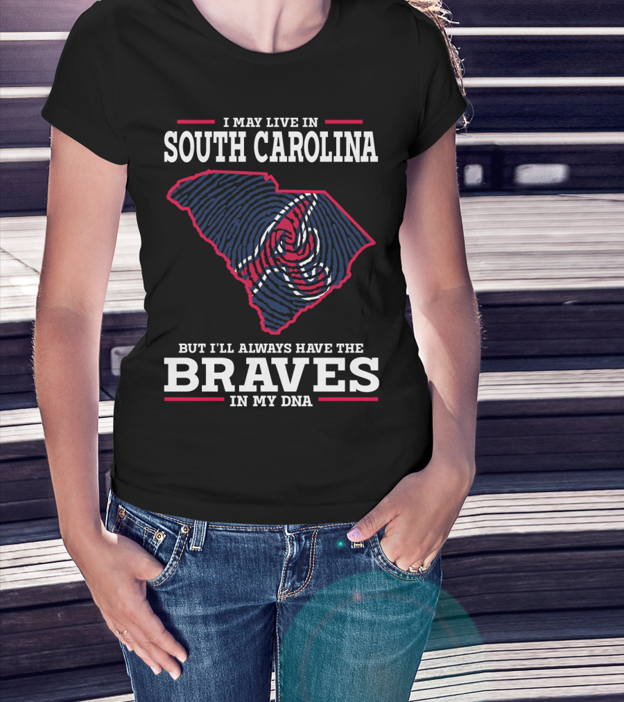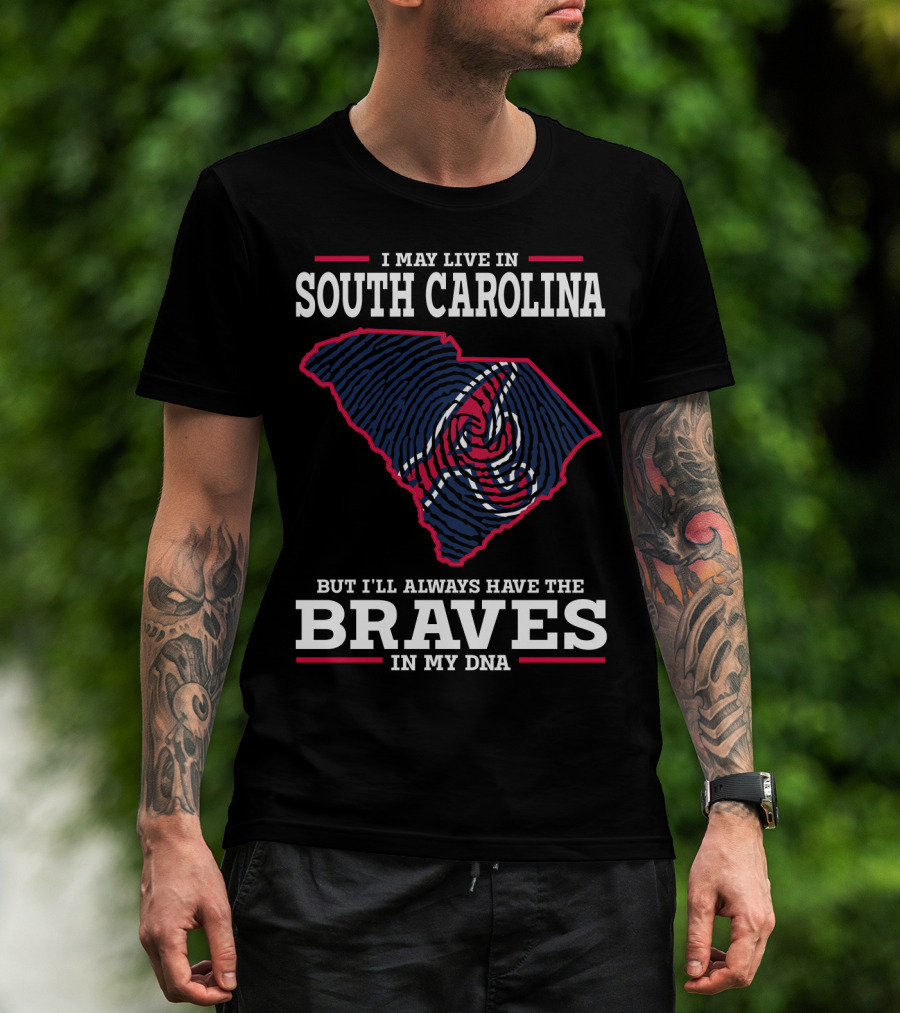 I MAY LIVE IN SOUTH CAROLINA BUT I'LL ALWAYS HAVE THE BRAVES IN MY DNA T-Shirt