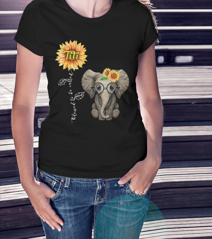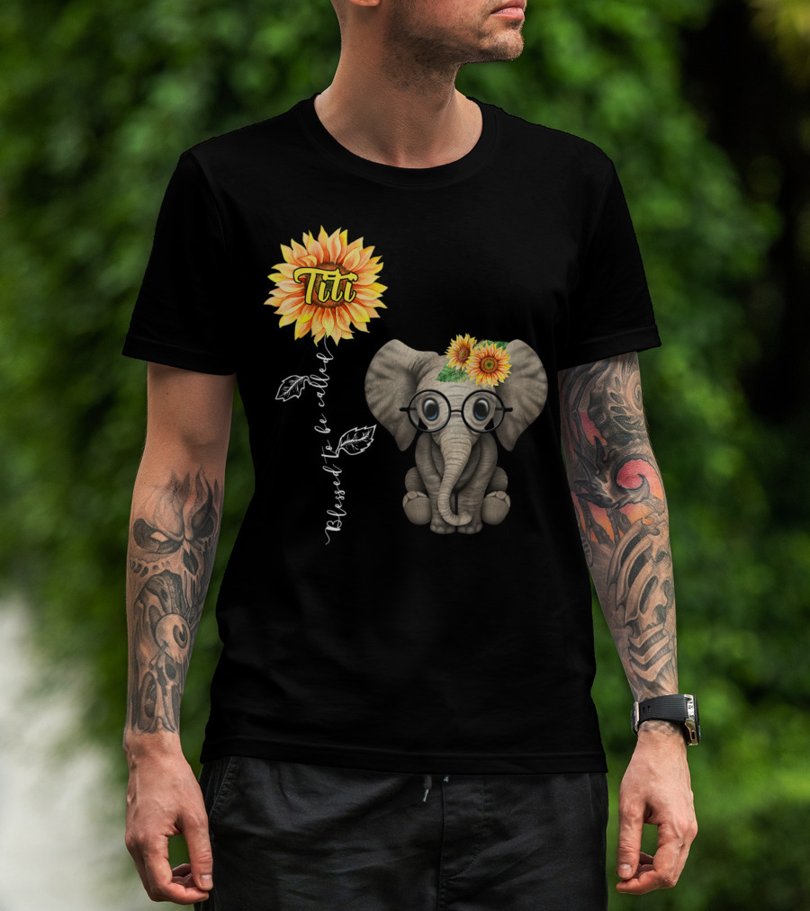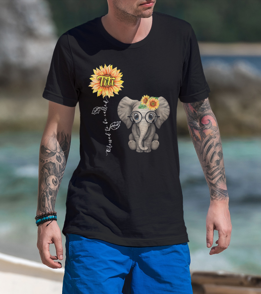 Blessed To Be Called Titi Sunflower Glasses Elephant Aunt T-Shirt
