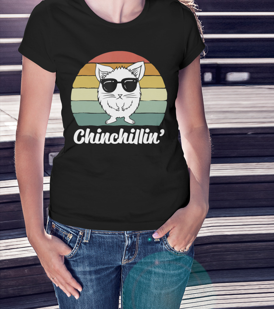 Chinchillin' Funny Chinchilla Owner Lover Retro Sunglasses T-Shirt