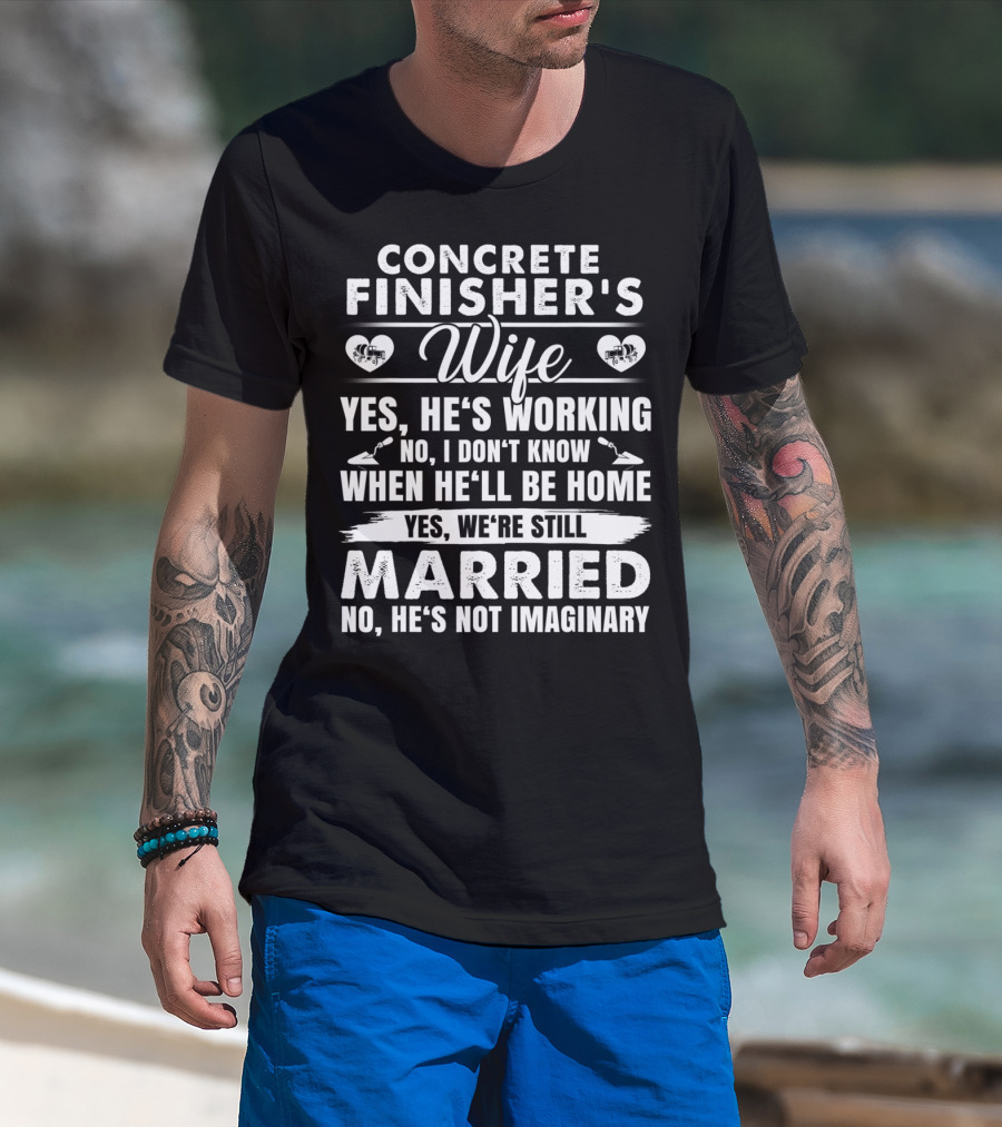 CONCRETE FINISHER'S WIFE YES HE'S WORKING NO I DON'T KNOW WHEN HE'LL BE HOME YES WE'RE STILL MARRIED NO HE'S NOT IMAGINARY T-Shirt