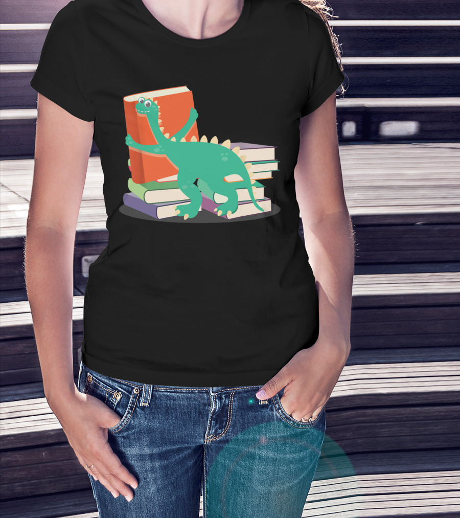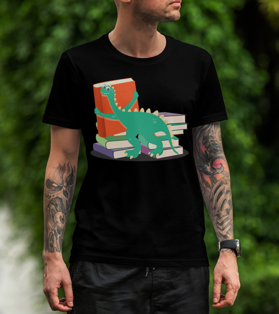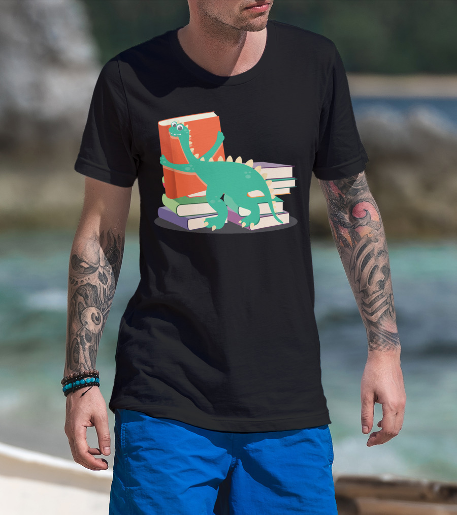 Cute Dinosaur Hugging Books For Bookish Literary Nerds T-Shirt
