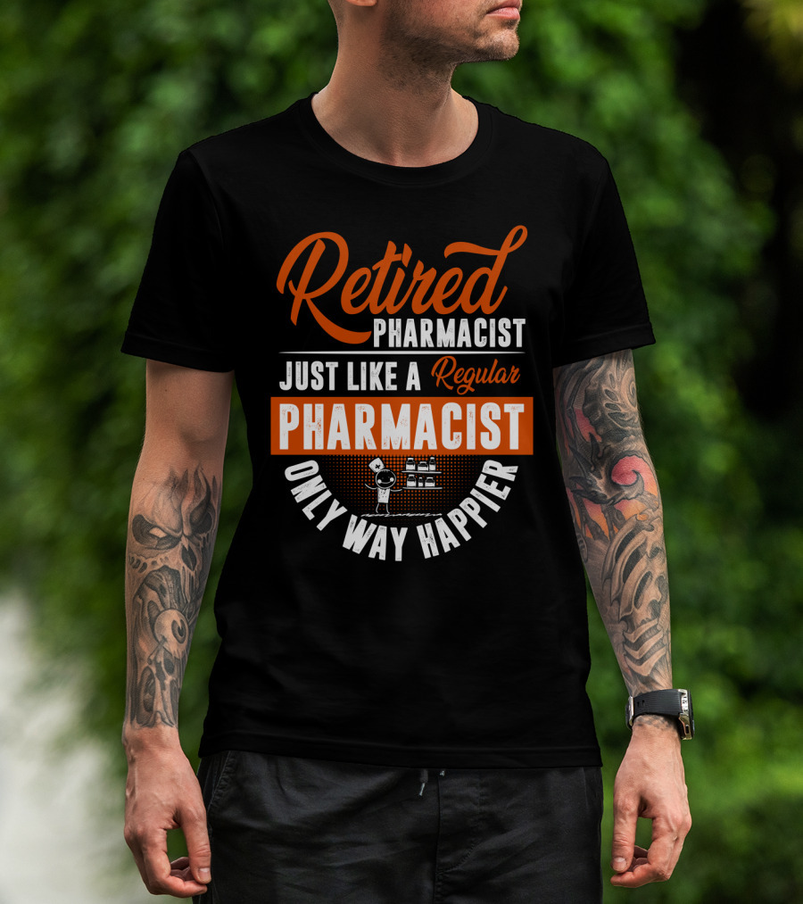 The Retired Pharmacist Just Like a Regular Pharmacist Only Way Happier T-shirt is designed for everyday wear and a consistent fit. Fabric is pre-shrunk ring-spun cotton with durable stitching. See the size chart below for exact measurements.