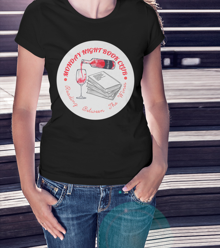 Monday Night Book Club Reading Between The Wines Merlot Books Red Wine Glass T-Shirt