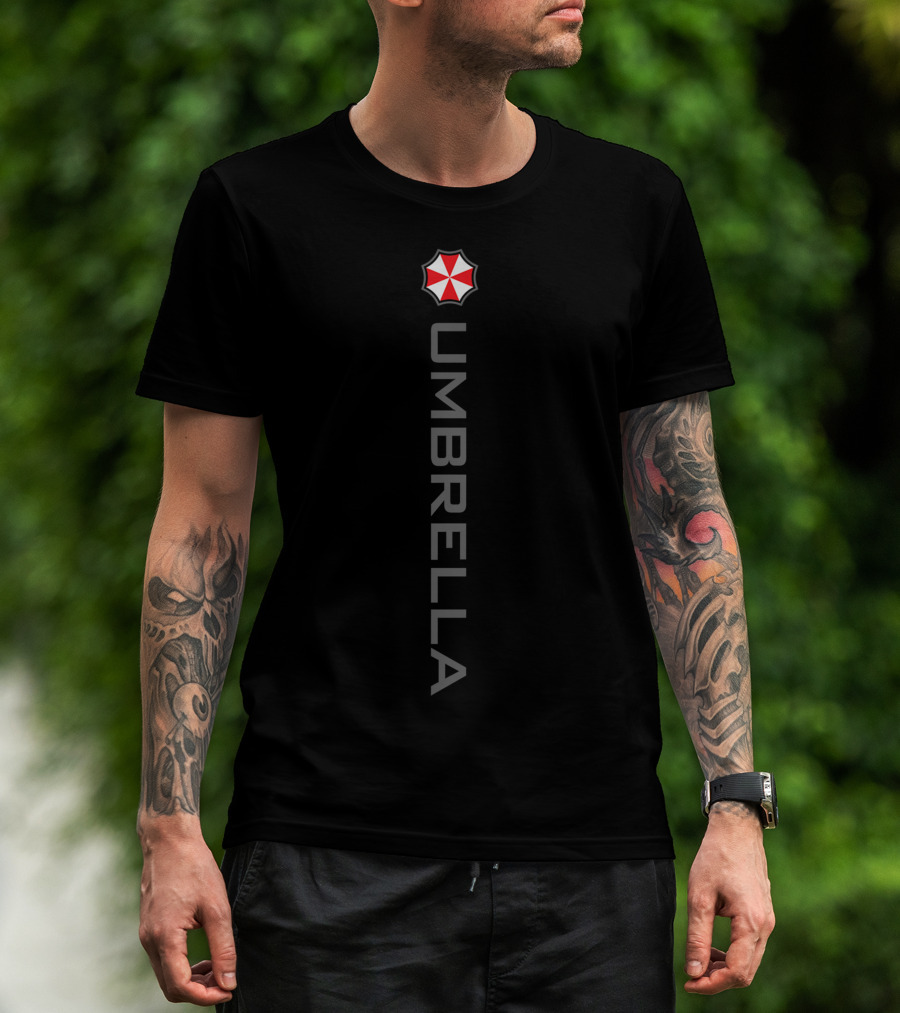 The Umbrella Corporation Vertical Logo Mens T-shirt is designed for everyday wear and a consistent fit. Fabric is pre-shrunk ring-spun cotton with durable stitching. See the size chart below for exact measurements.