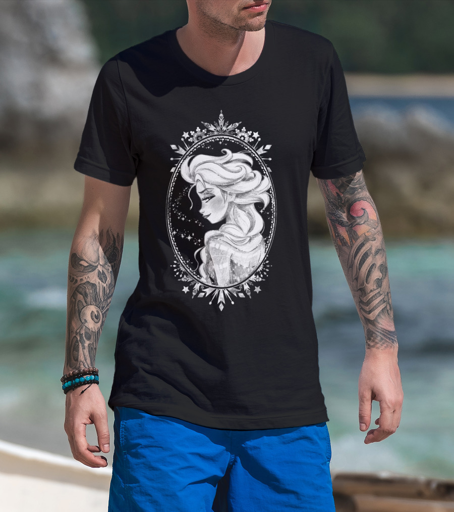 Disney Frozen Elsa Sketch Portrait Snowflakes Oval Frame T-Shirt