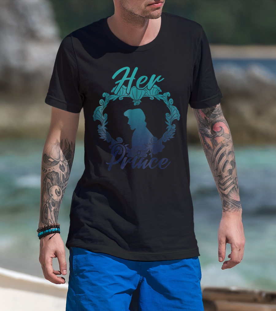 Disney Little Mermaid Eric Her Prince Silhouette Teal Floral T-Shirt