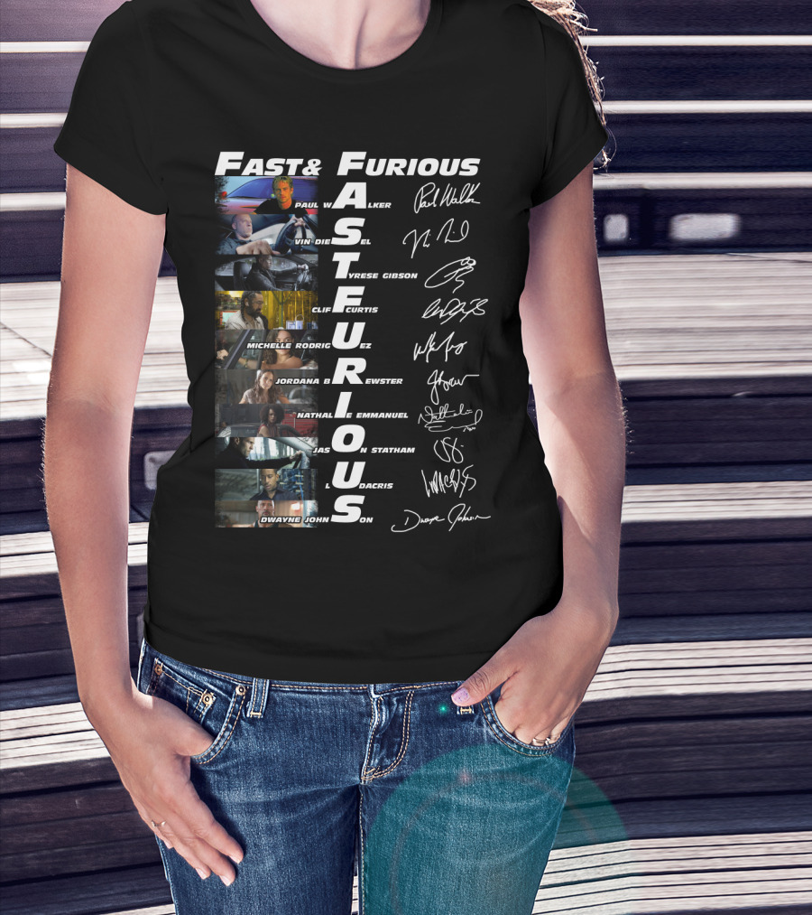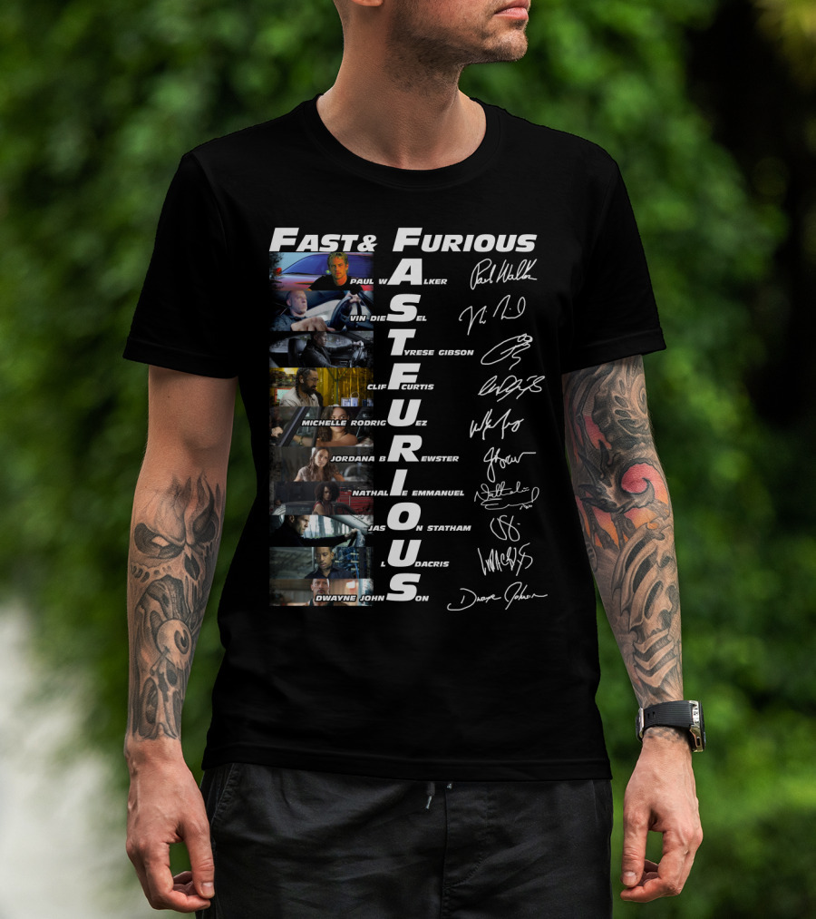 Fast And Furious Paul Walker Vin Diesel Tyrese Gibson Michelle Rodriguez Cast Signatures Thank You For The Memories T-Shirt
