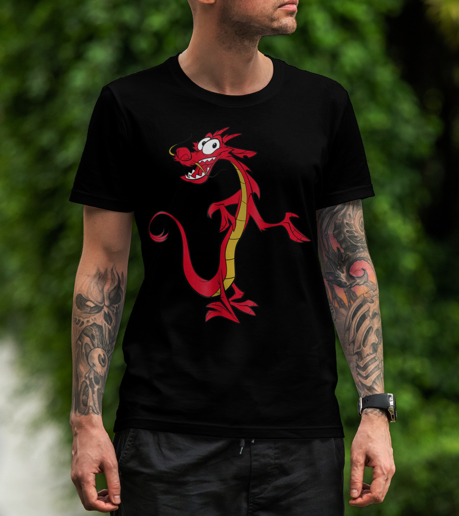 The Disney Mulan Mushu Dragon T-shirt is designed for everyday wear and a consistent fit. Fabric is pre-shrunk ring-spun cotton with durable stitching. See the size chart below for exact measurements.