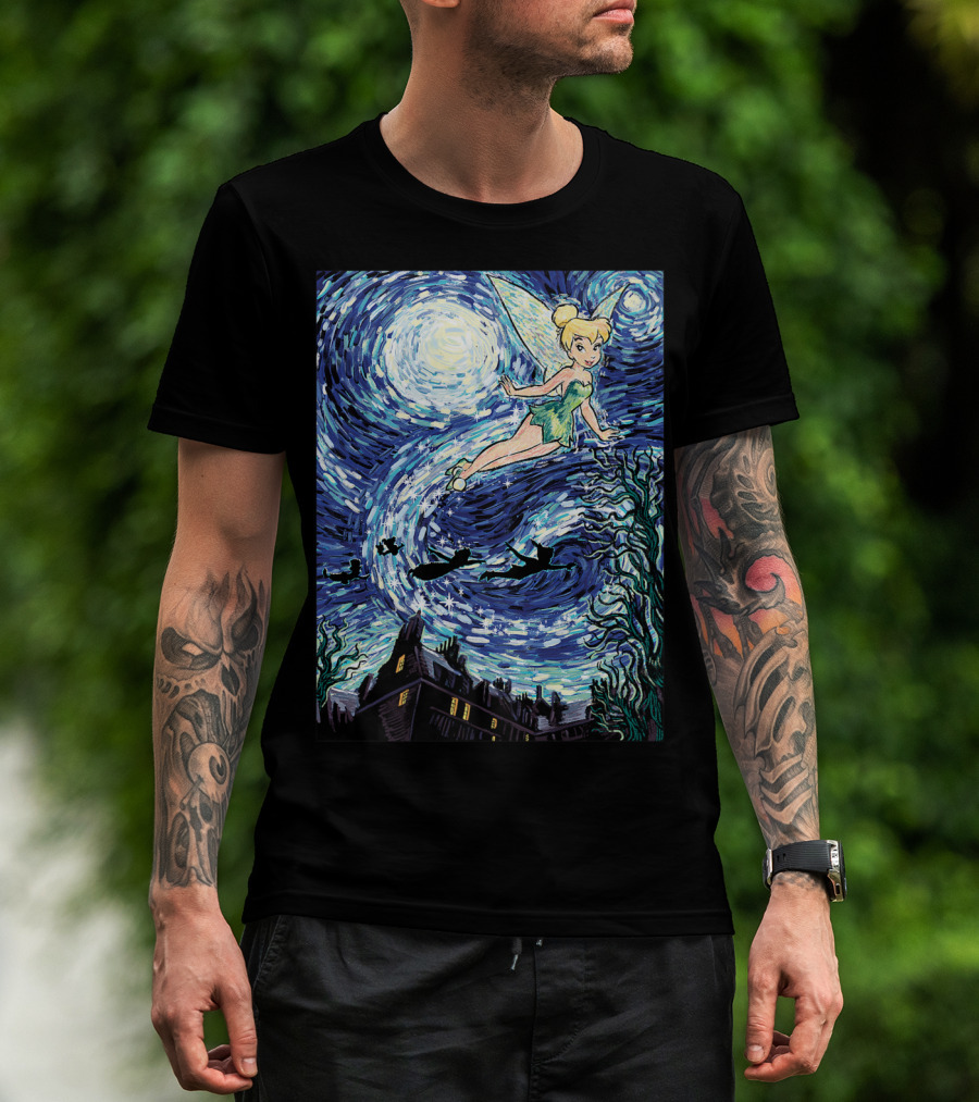 Disney Peter Pan Tinker Bell Starry Night Van Gogh Style Flight Scene T-Shirt