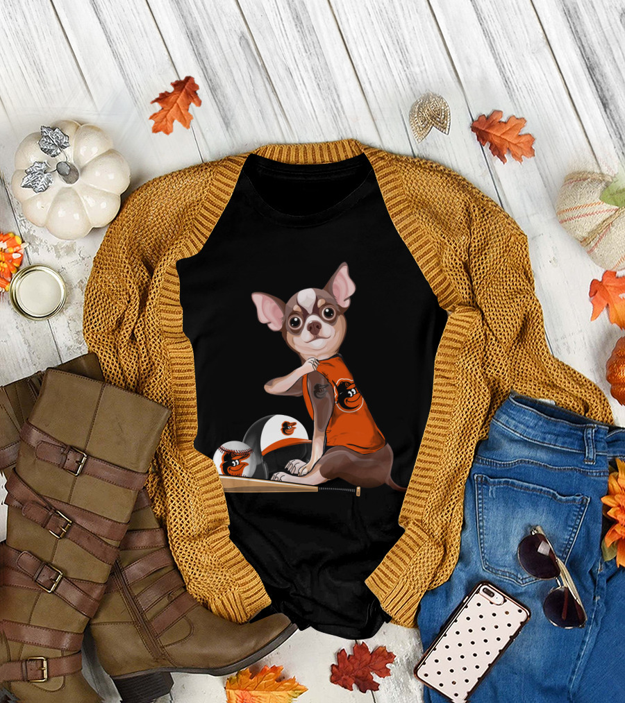 Baltimore Orioles Chihuahua Baseball Fan With Bat And Helmet T-Shirt